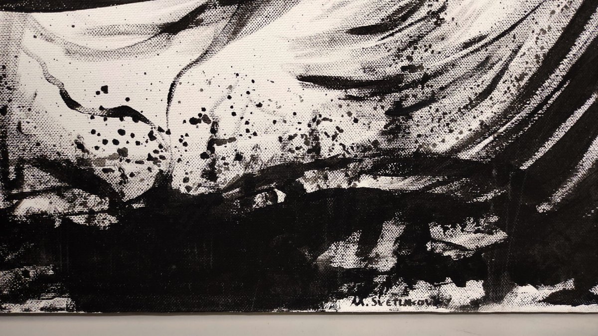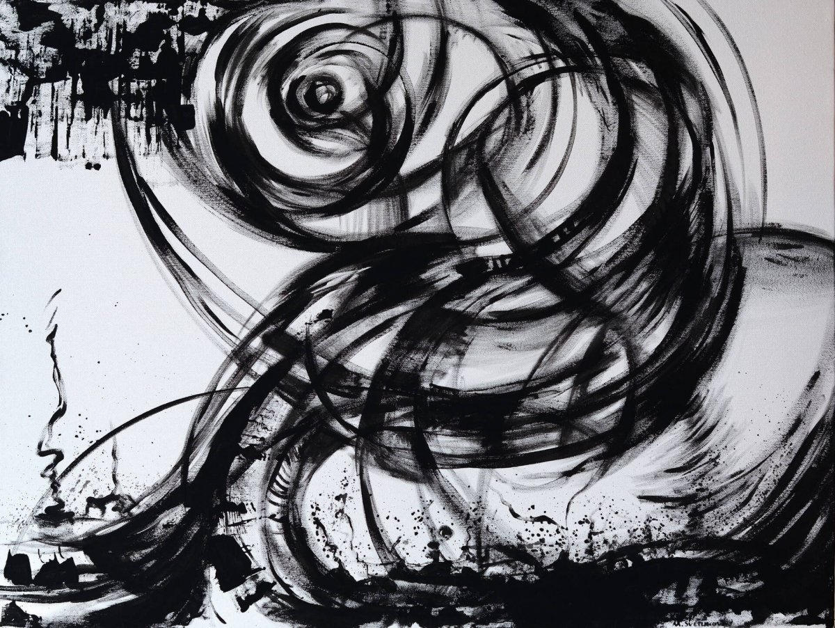 Эта работа отображает силу человеческих чувств и вихри эмоций, передаёт динамику и экспрессию, усиленные черно-белым контрастом.