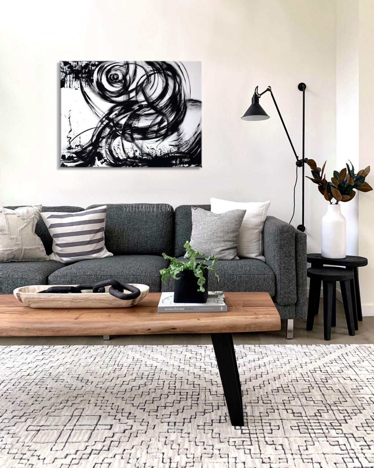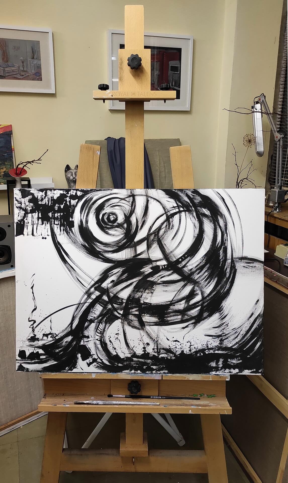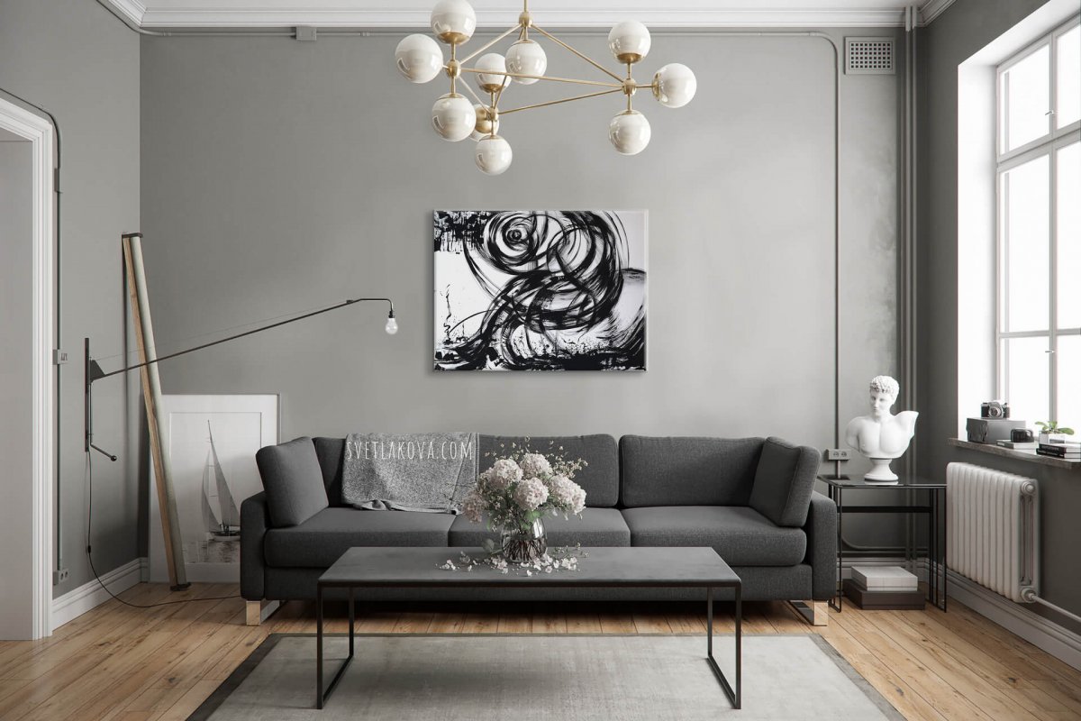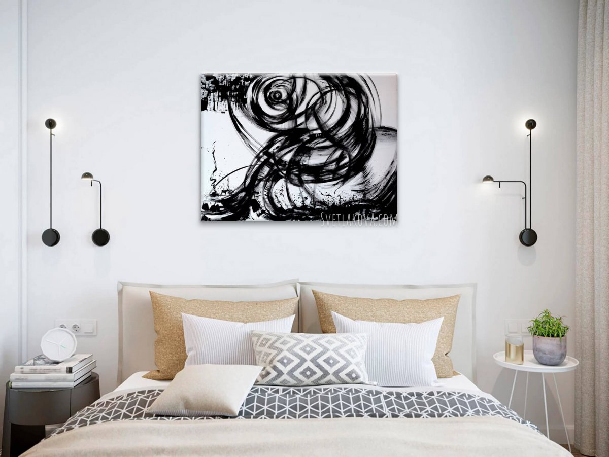 Экспрессивная и эмоциональная черно-белая абстракция для современного интерьера.