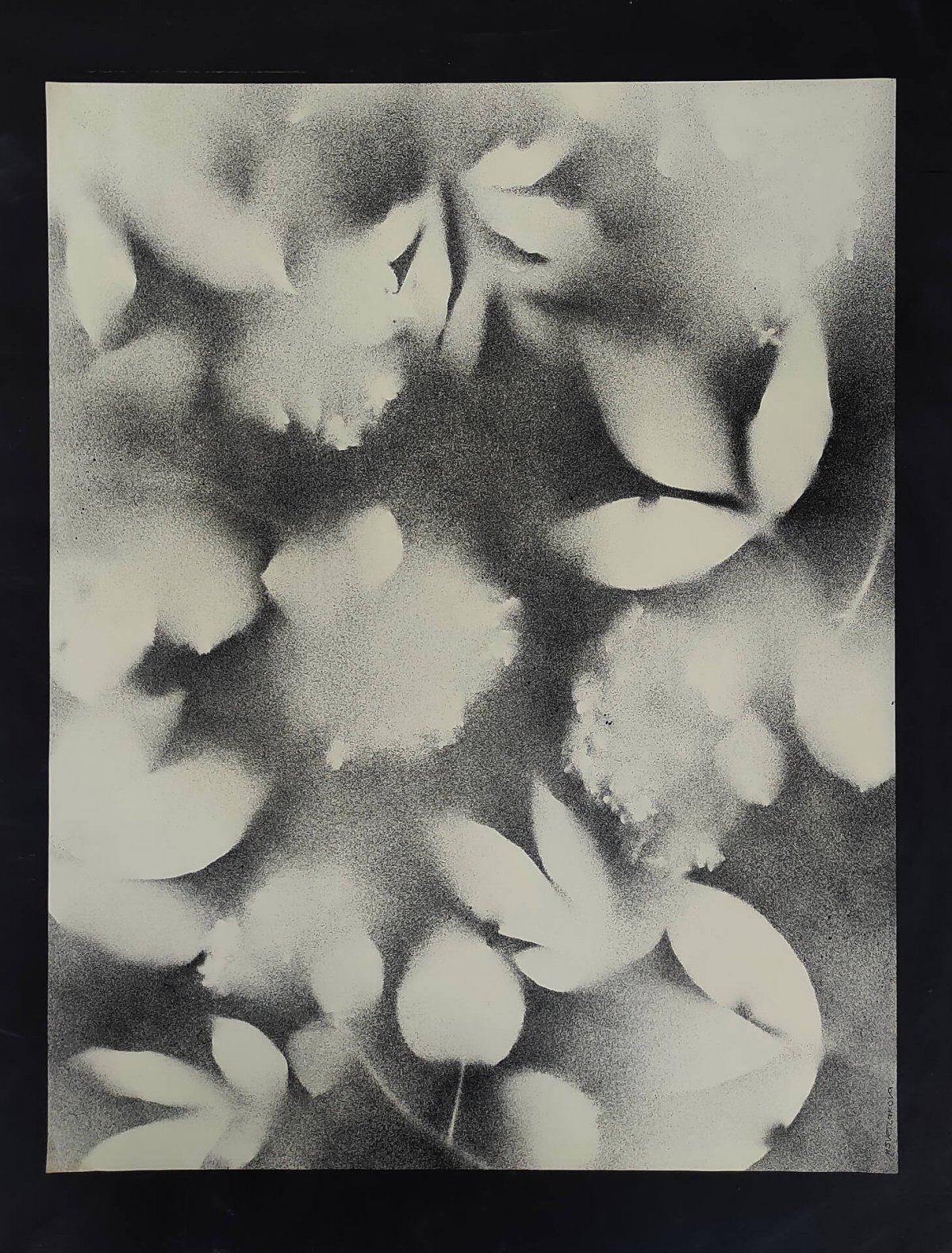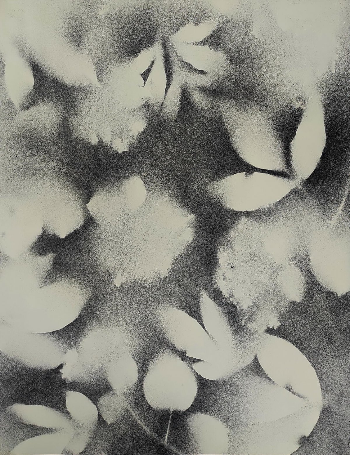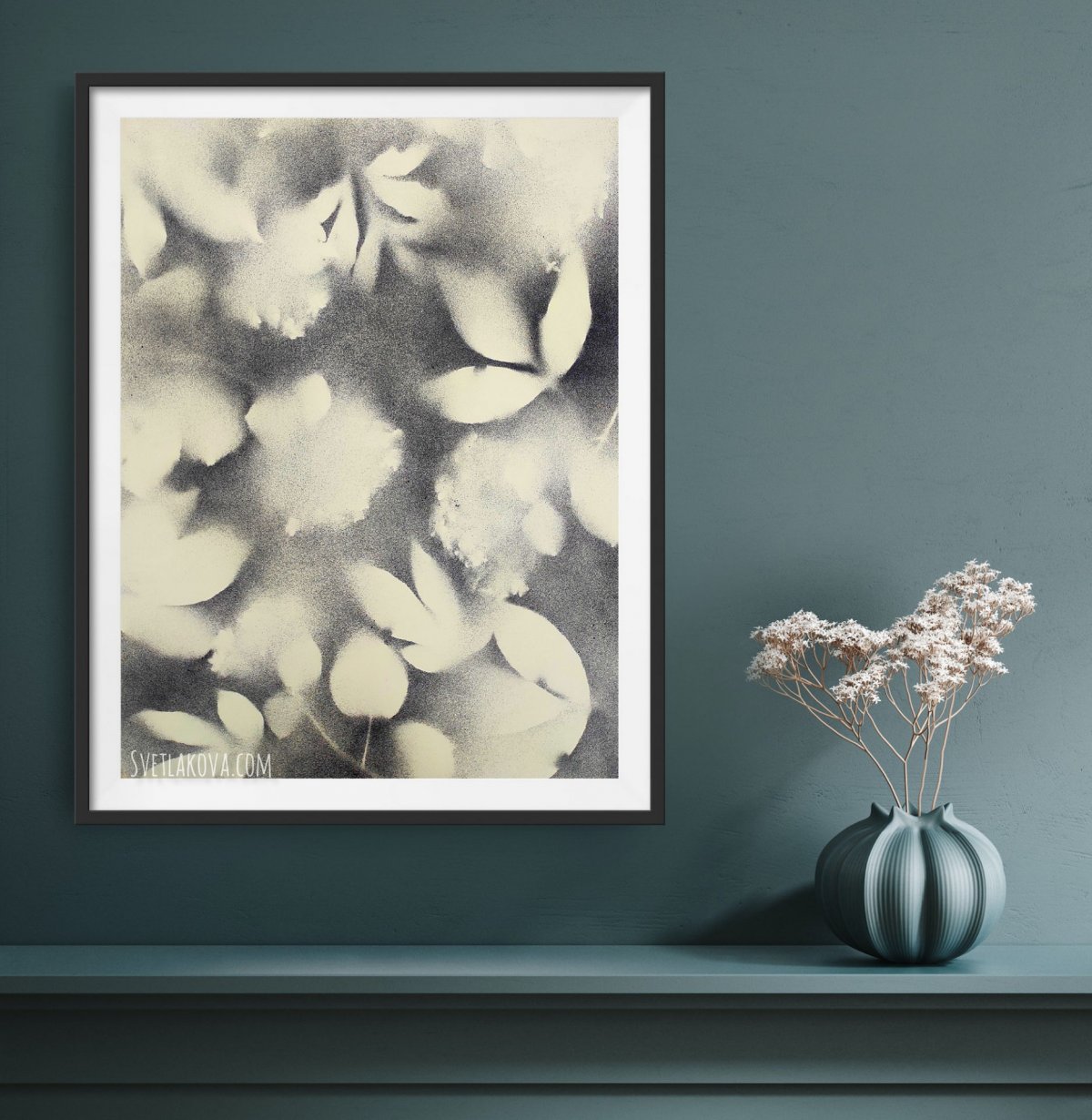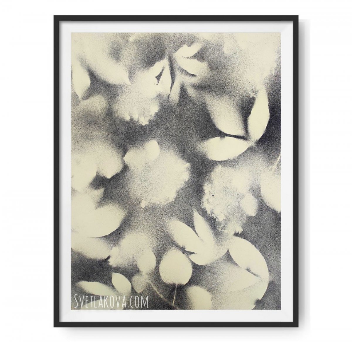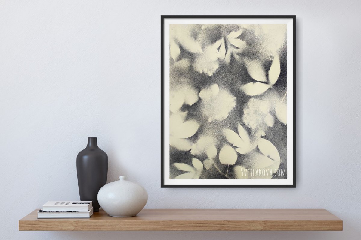 Графичные силуэты и полутени трав и цветов - как память о летних вечерах. Картина напоминает старое размытое черно-белое фото, снятое на плёнку. Настроение: романтизм, немного грусти, ощущение счастья.