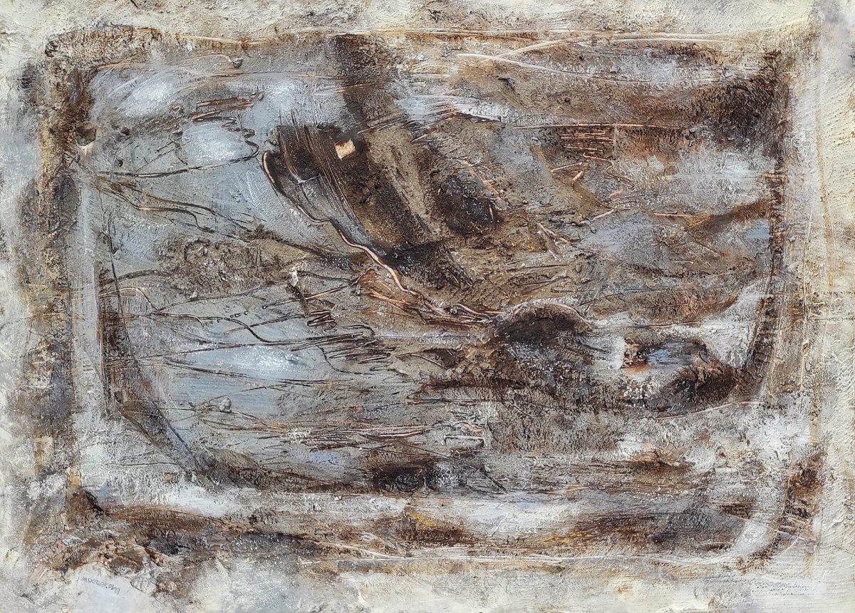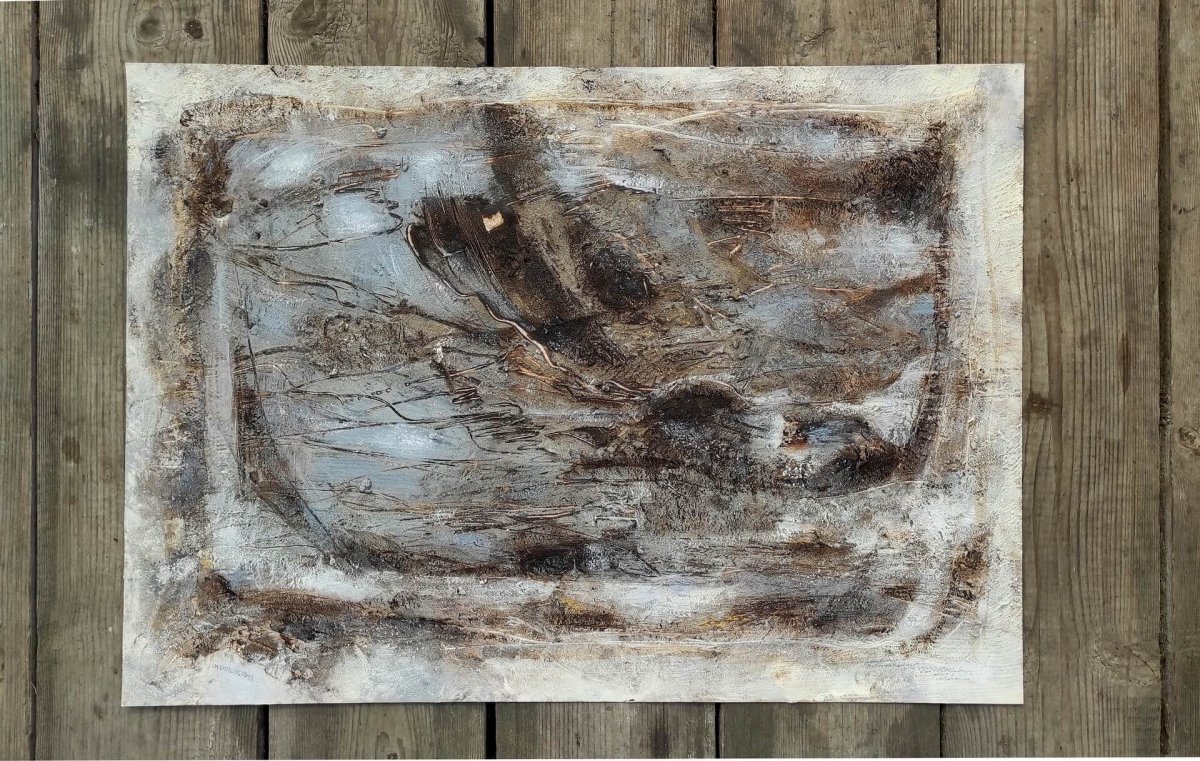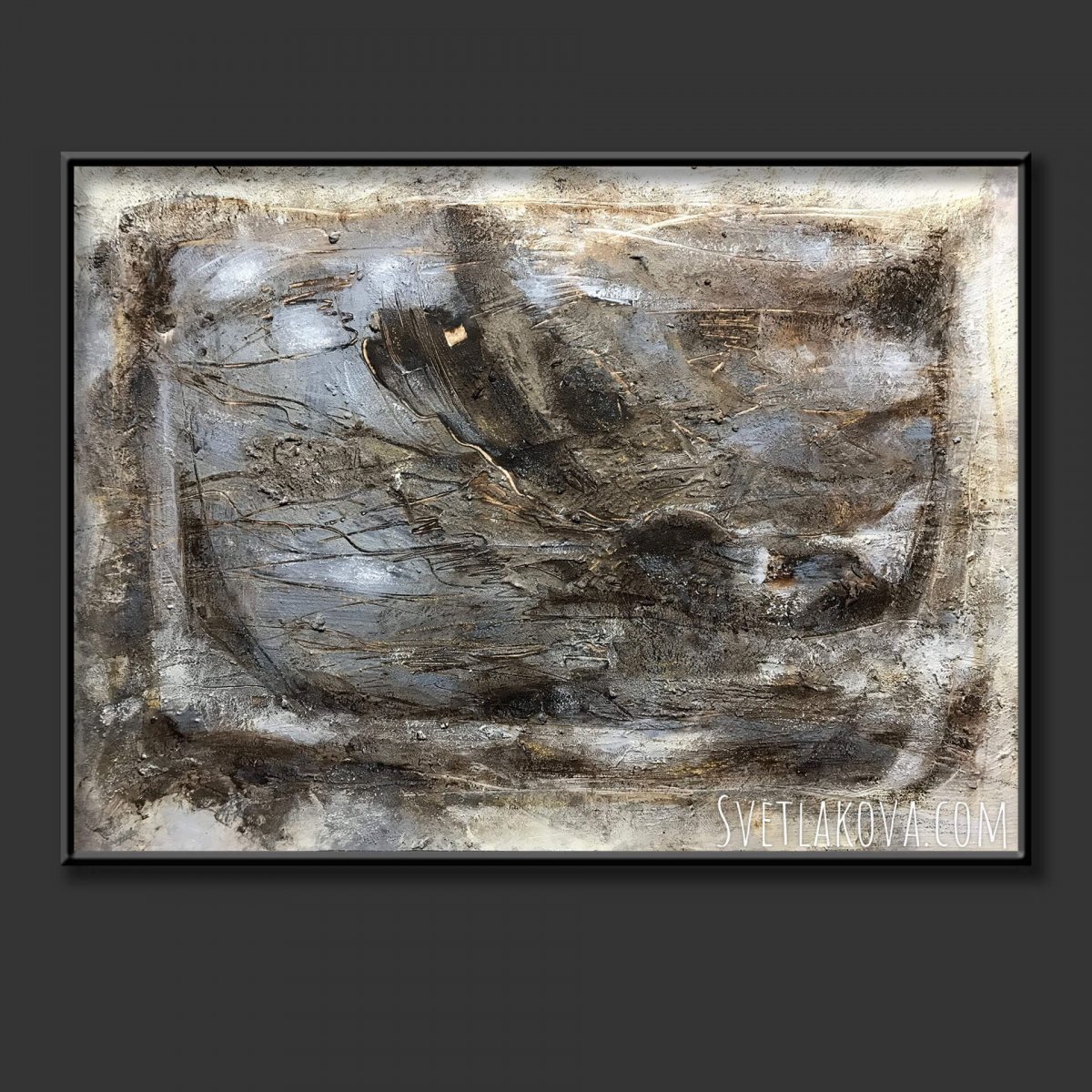 Текстурная коричневая с серо-голубым абстракция в стиле абстрактный экспрессионизм.