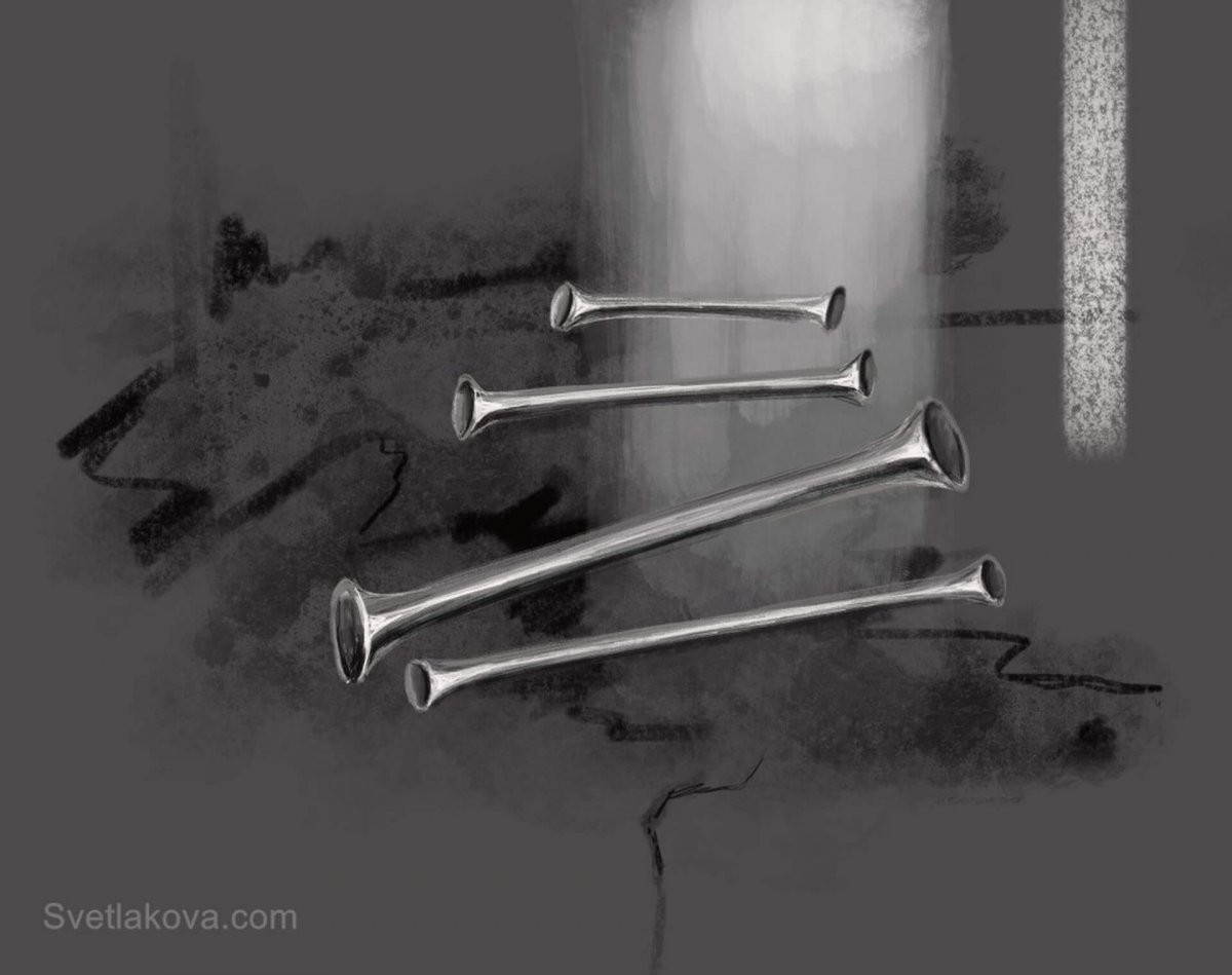 Работа создана в технике экспериментальной цифровой живописи и с применением цифровых художественных материалов, имитирующих мазки краски и графичные штрихи.