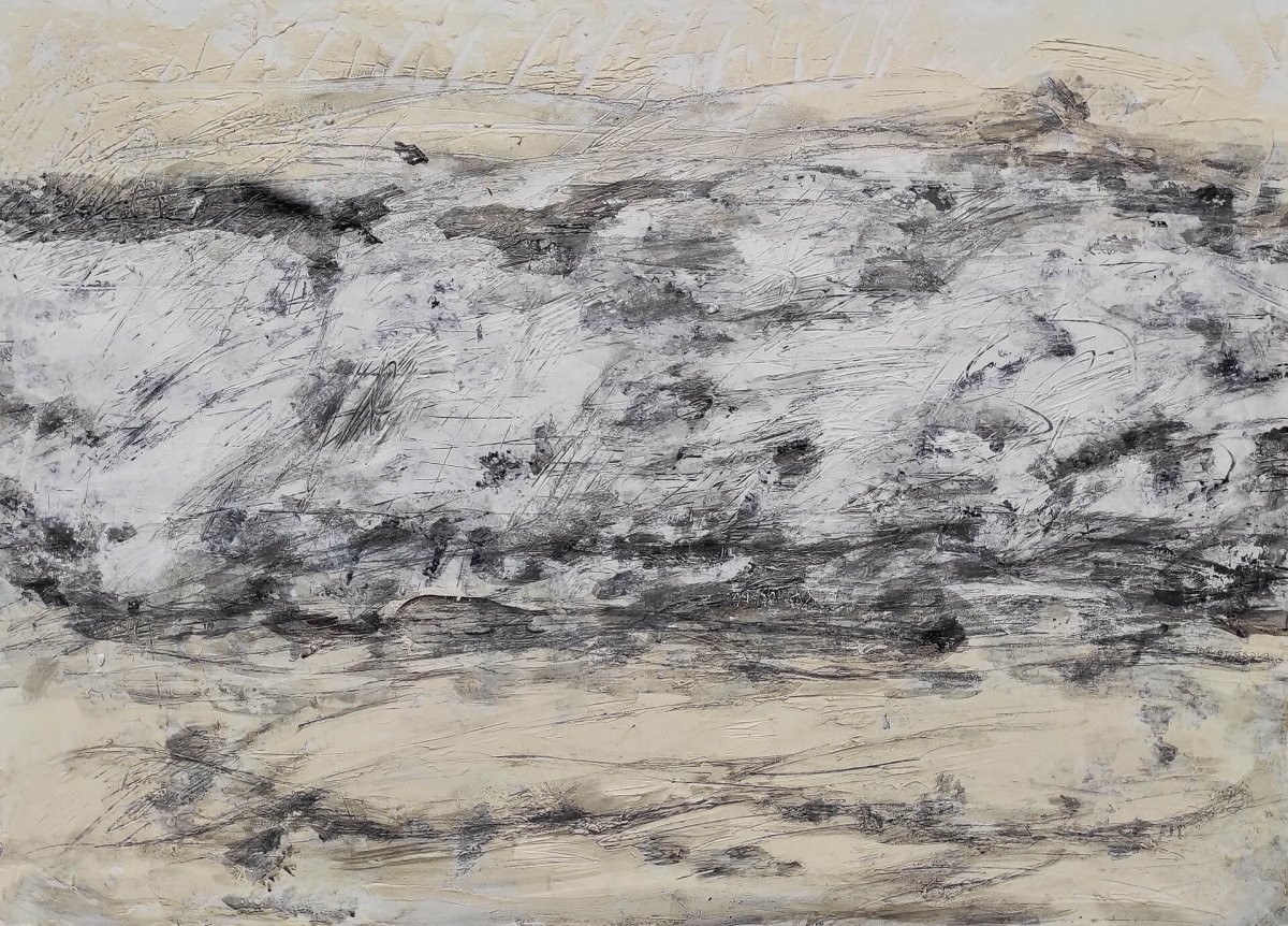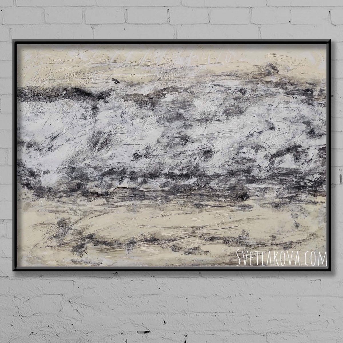 Текстурный монохромный бежево-серый абстрактный пейзаж.