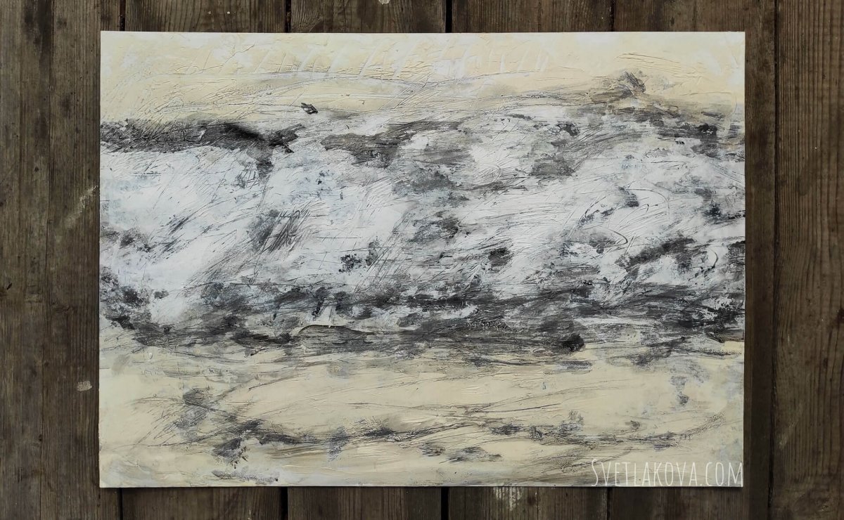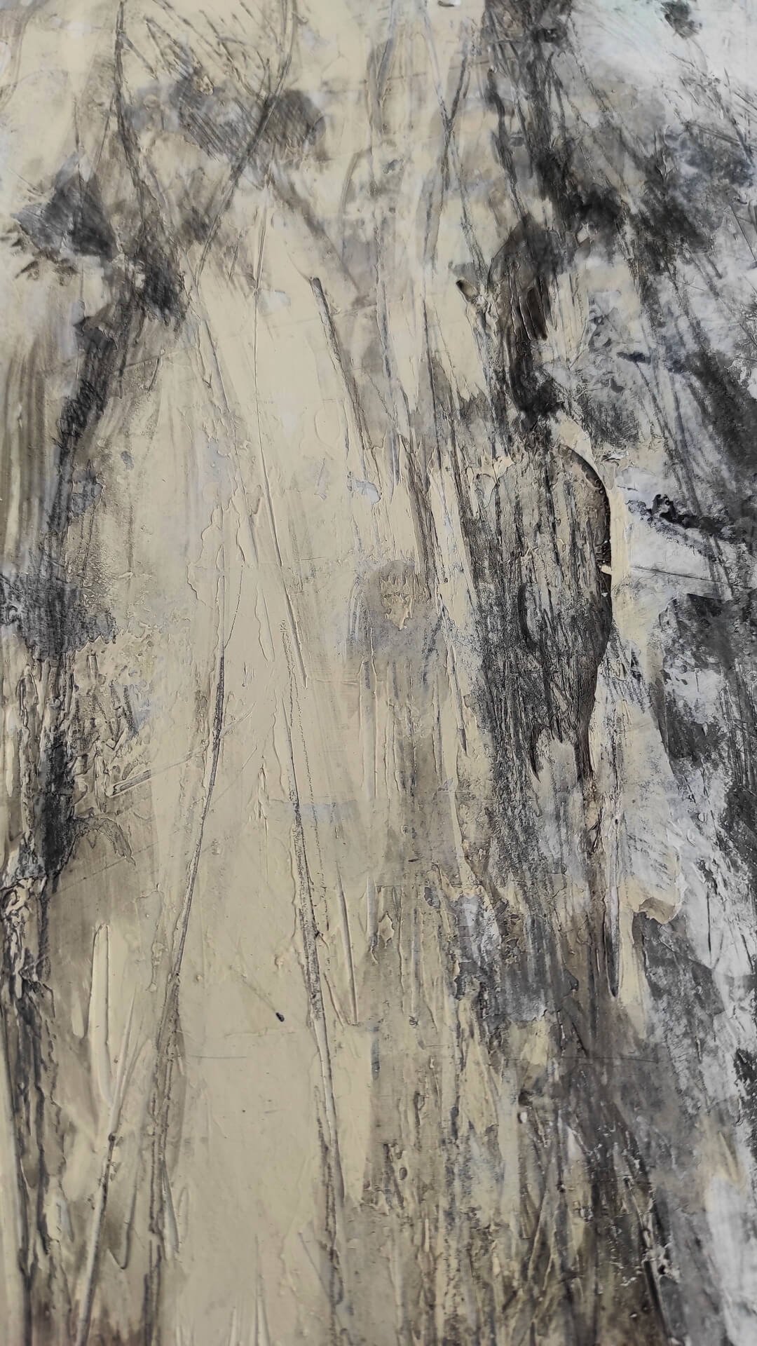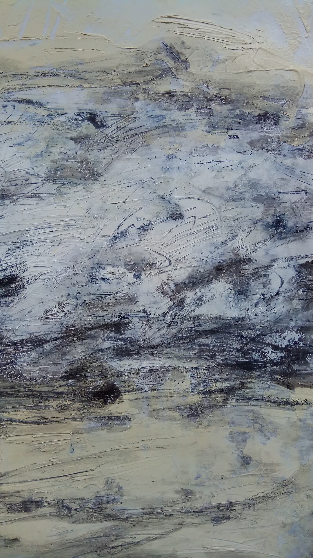 Эта работа является частью текстурированной абстрактной серии. Картина отображает причуды памяти, ее туманности и тайные места. Мы все помним что-то свое и не так, как другие, у каждого из нас своя история мира.