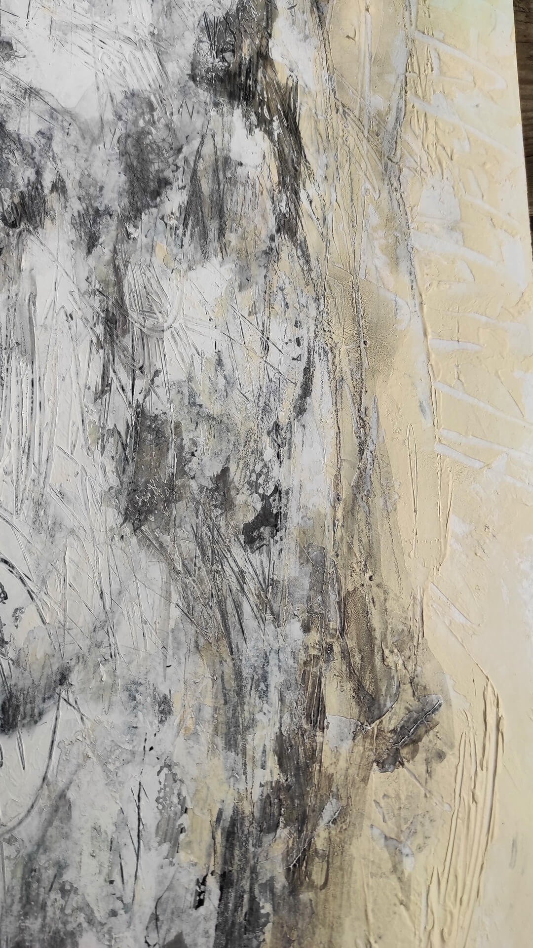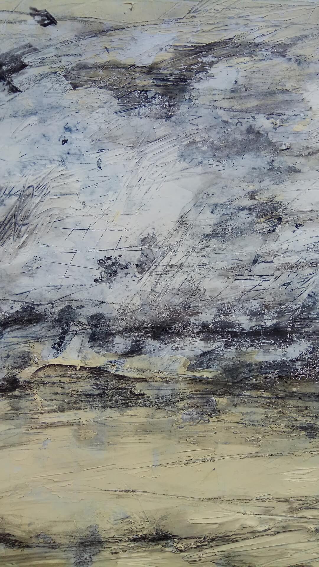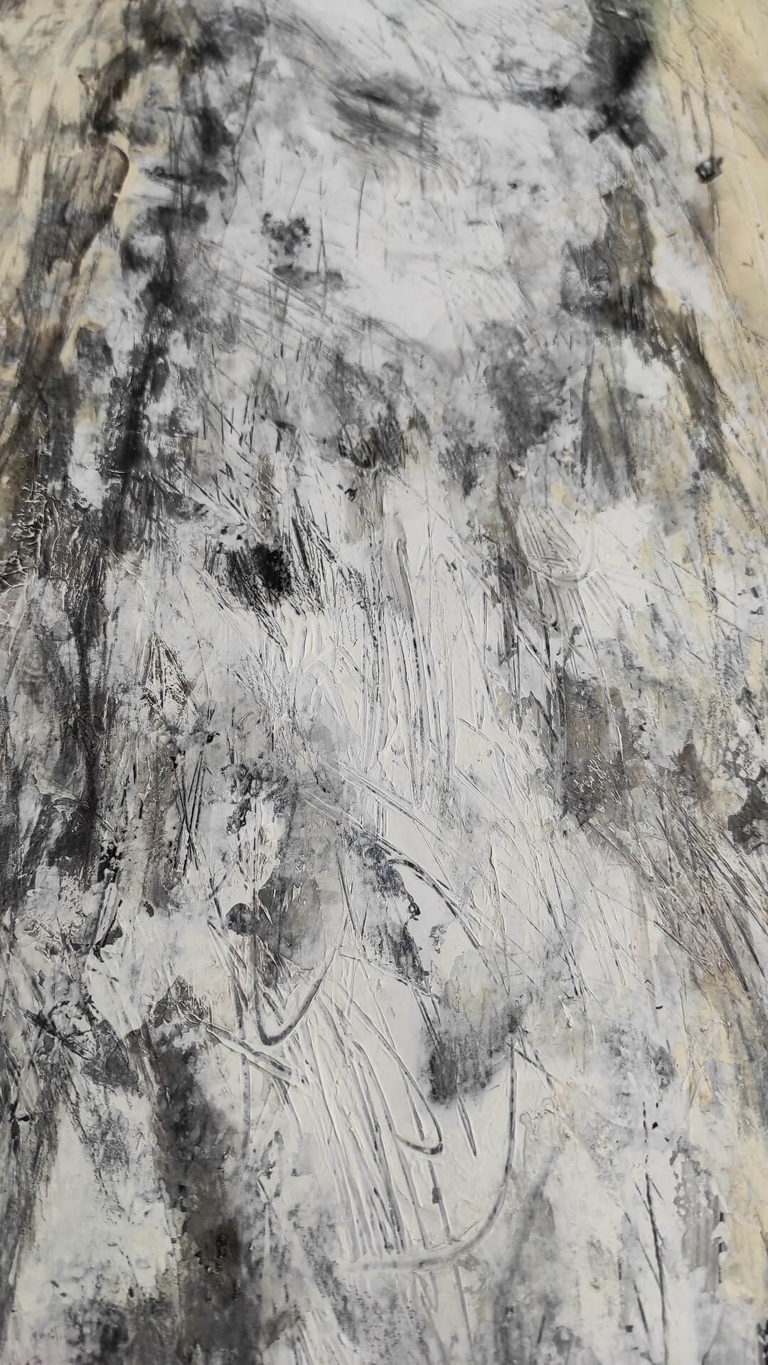 Эта работа является частью текстурированной абстрактной серии. Картина отображает причуды памяти, ее туманности и тайные места. Мы все помним что-то свое и не так, как другие, у каждого из нас своя история мира.
