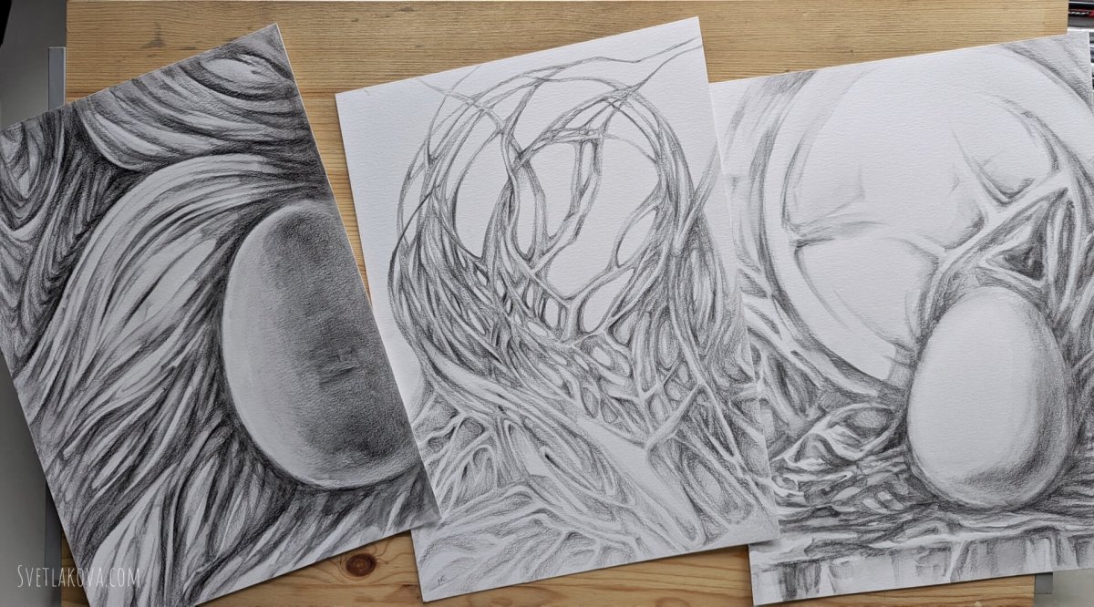 Графика, 3 листа по 29,7 х 42 см каждый.
