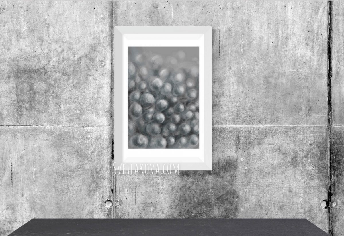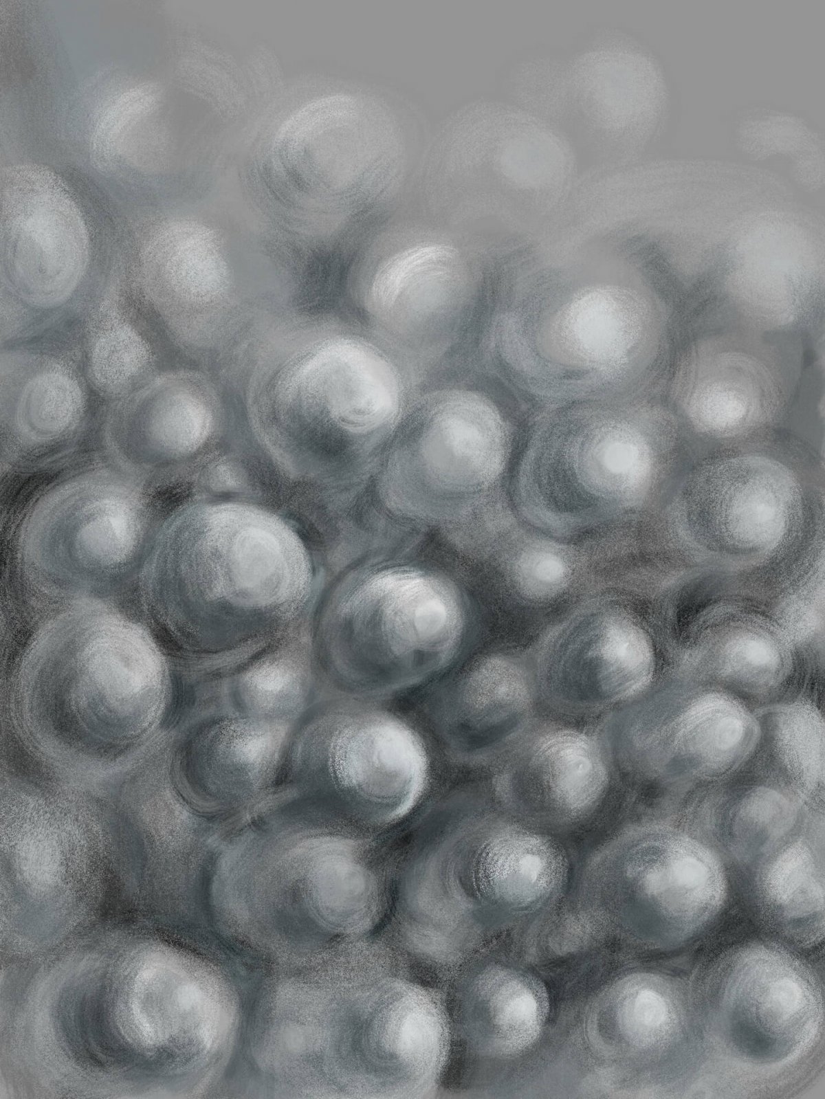 Графичная полуабстракция в серых холодных тонах, изображающая объемные полусферы.