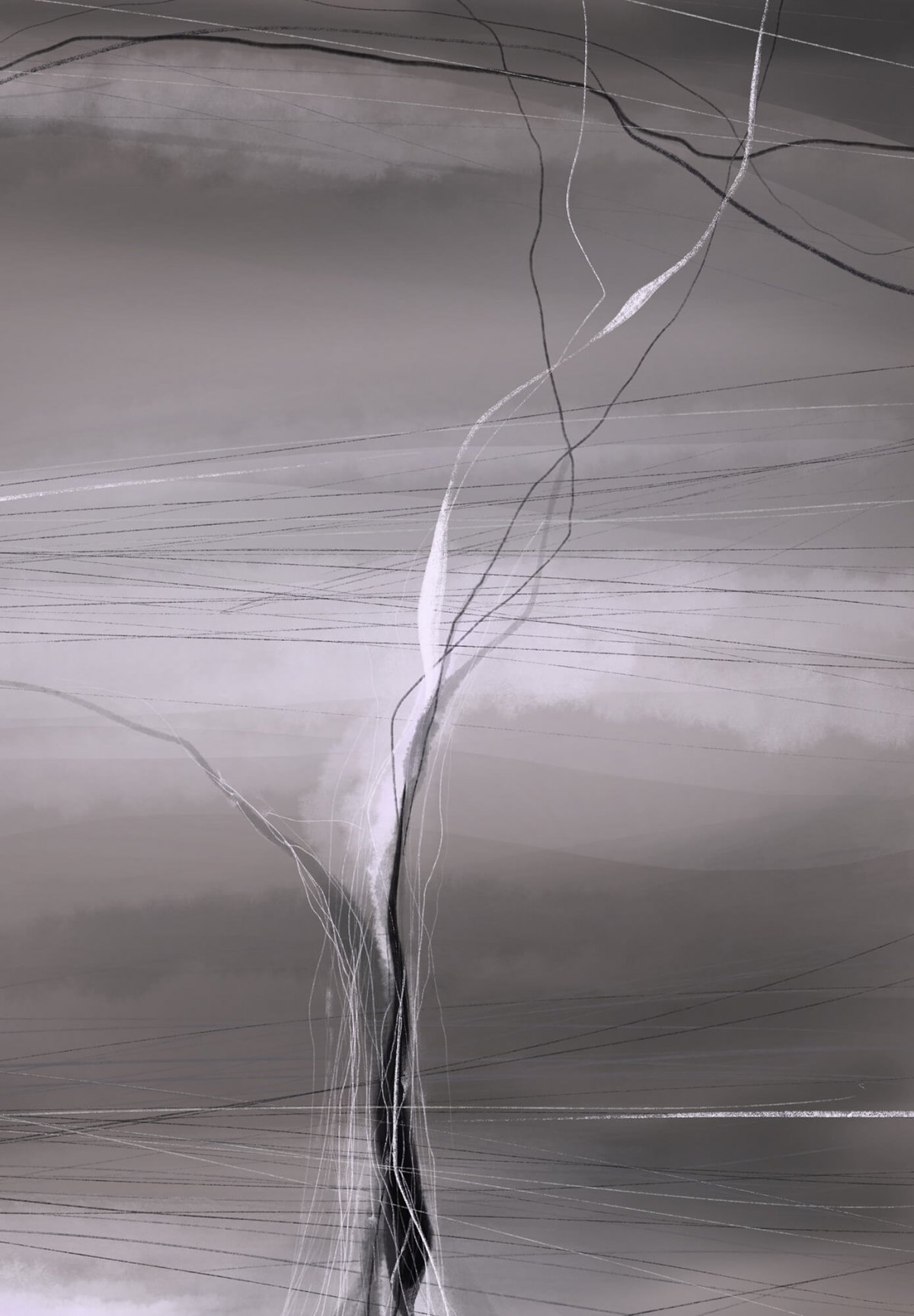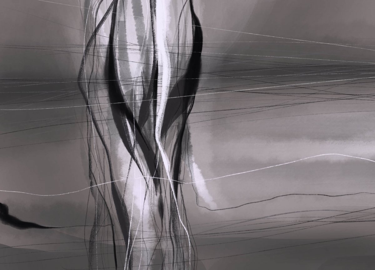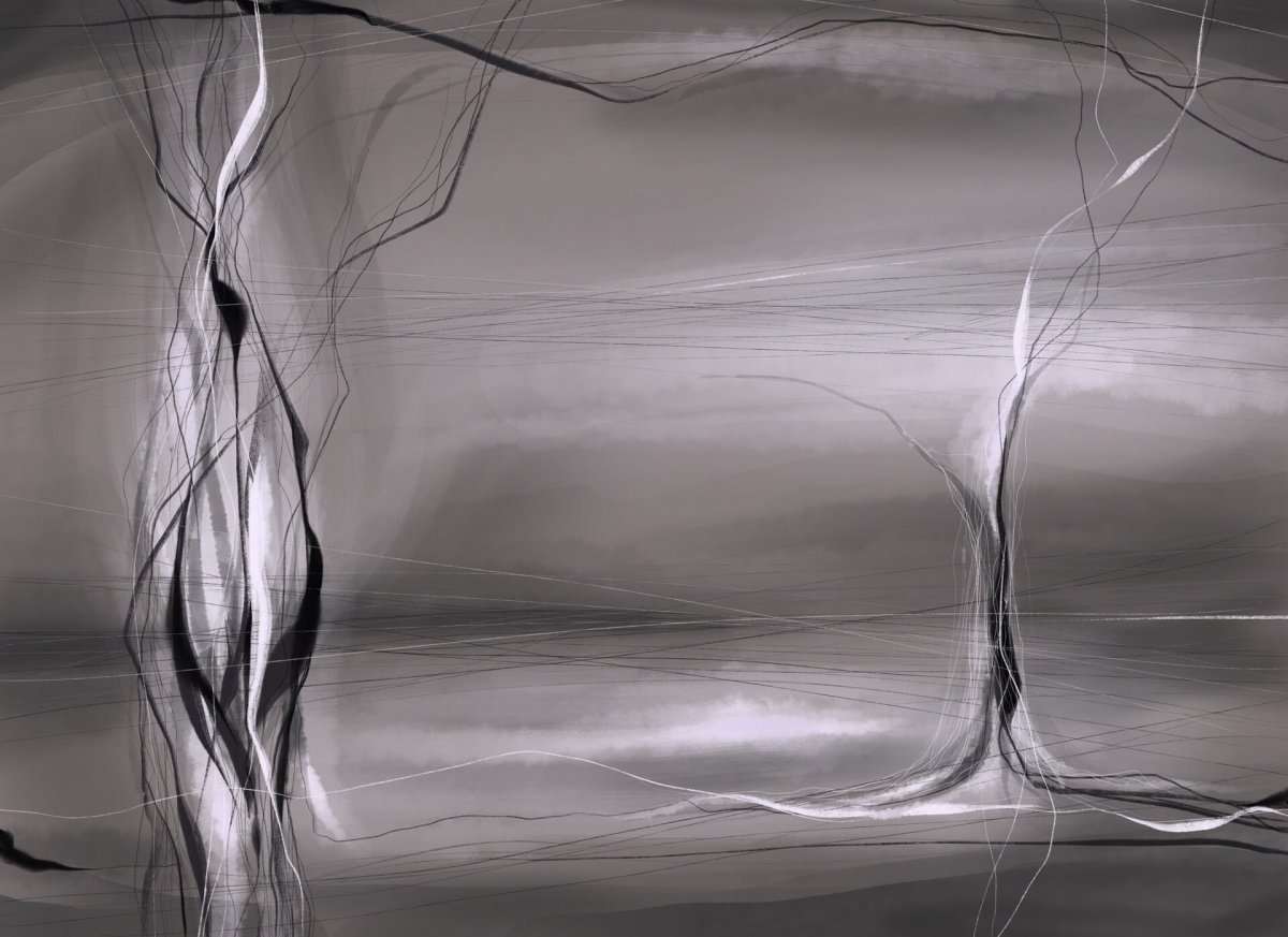 Сюрреалистичная черно-белая цифровая абстракция. Абстрактный пейзаж о преодолении одиночества.