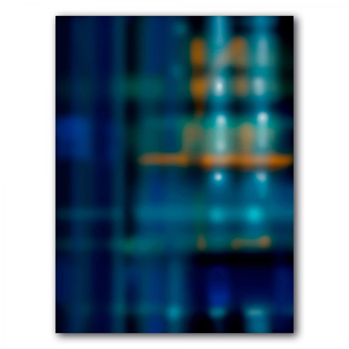 Сине-фиолетовая цифровая живопись. Абстрактный урбанистический пейзаж из серии "Ночь в городе".