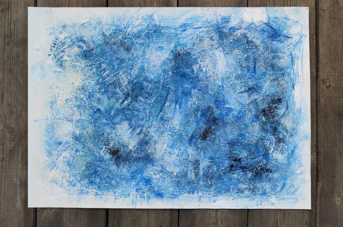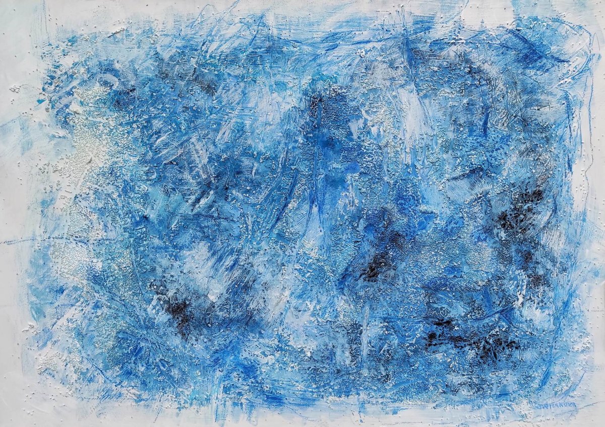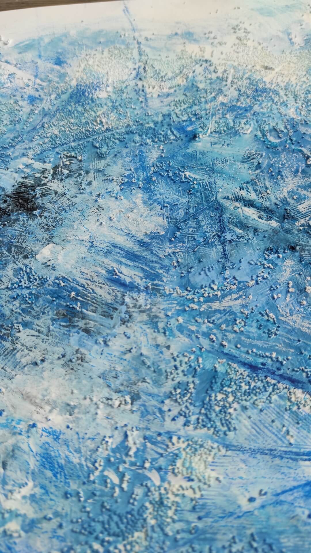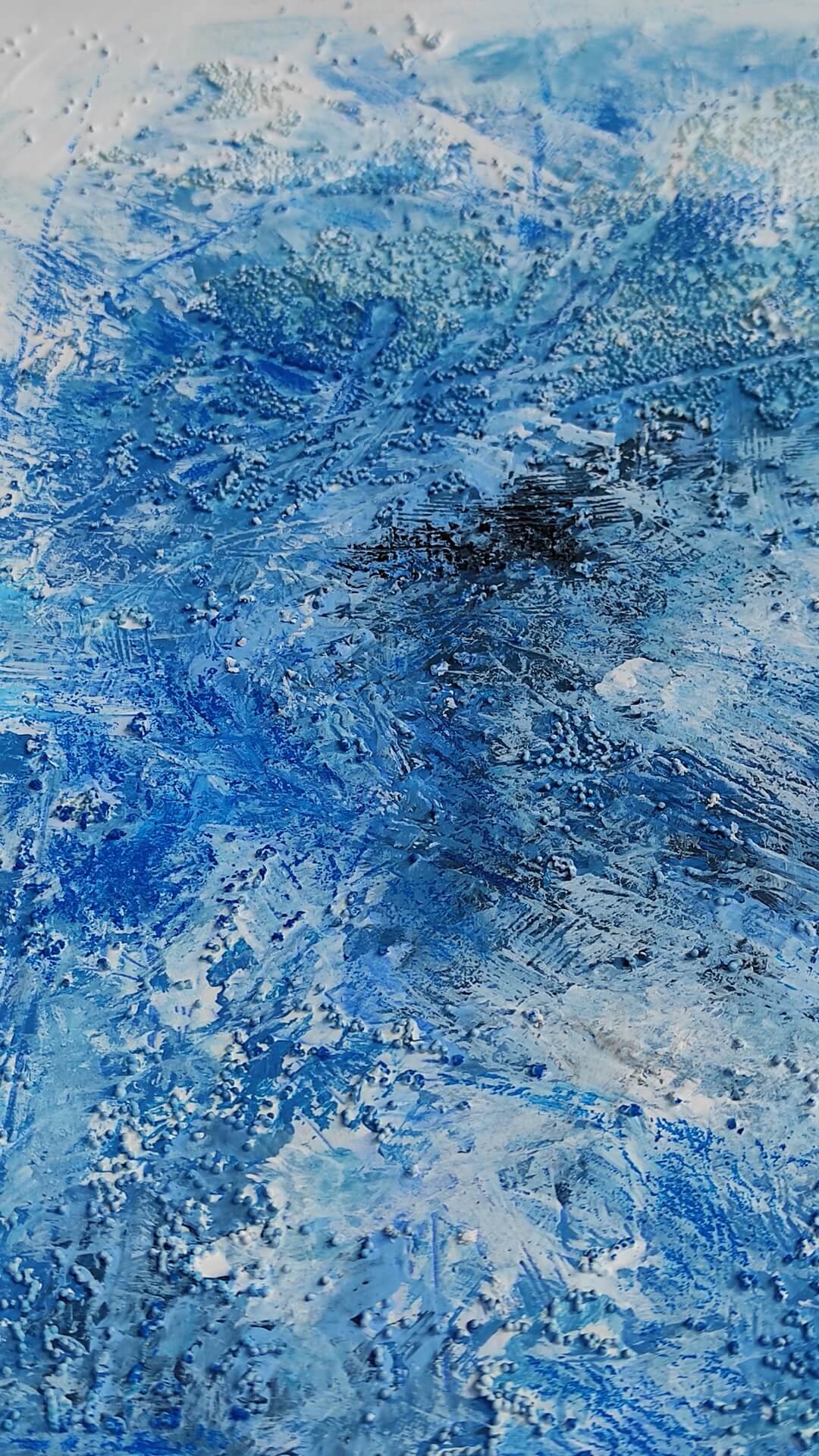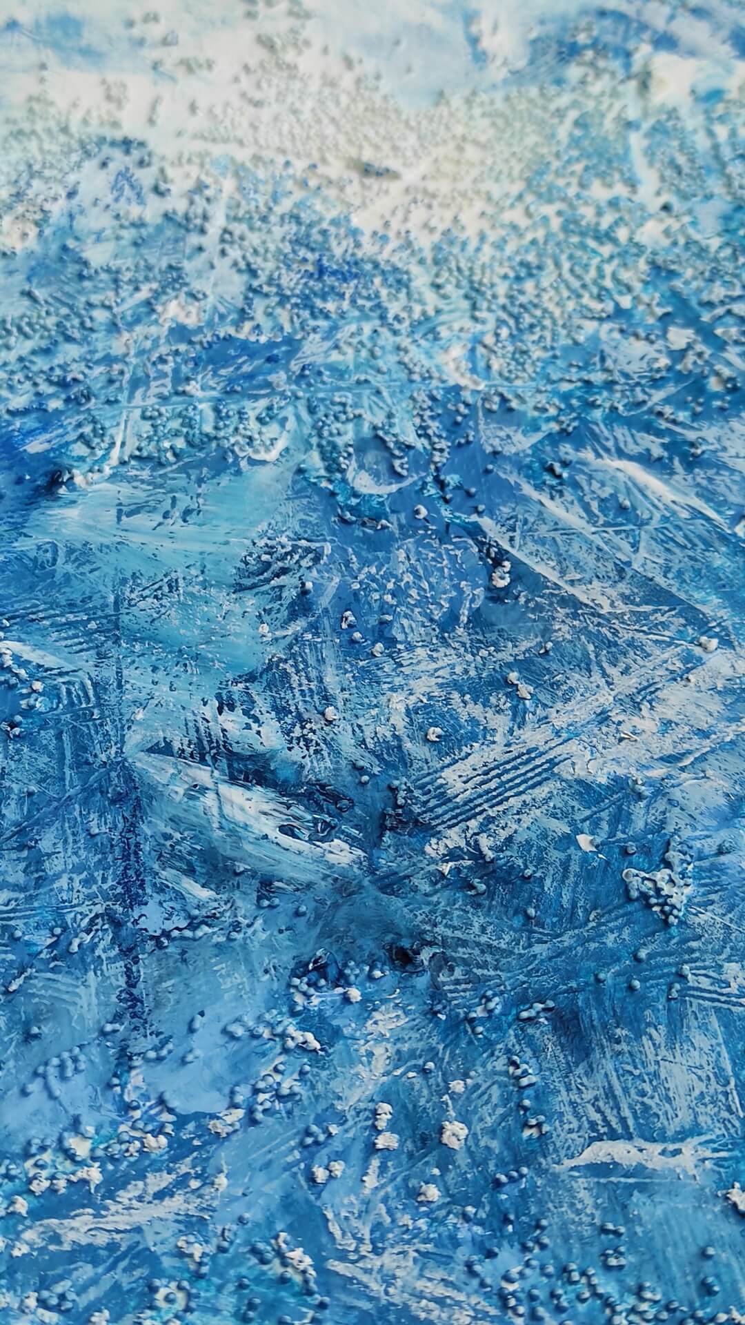 Эта картина является частью текстурированной абстрактной серии. Она передает богатство голубых оттенков неба, воды и воздуха. Почувствуйте свежесть и наслаждайтесь отдыхом.