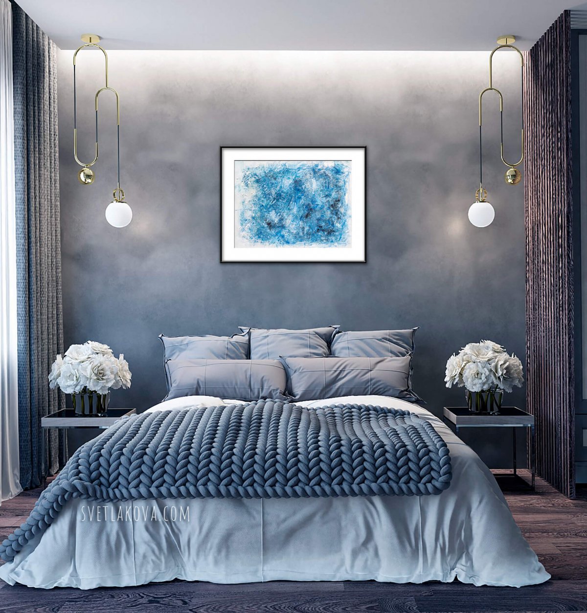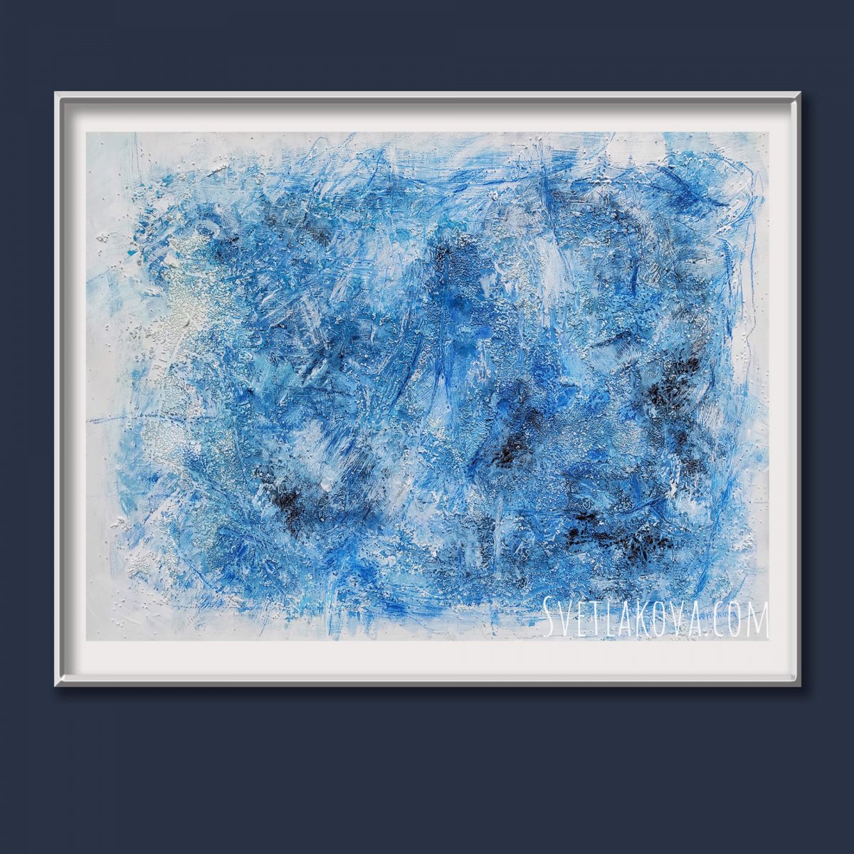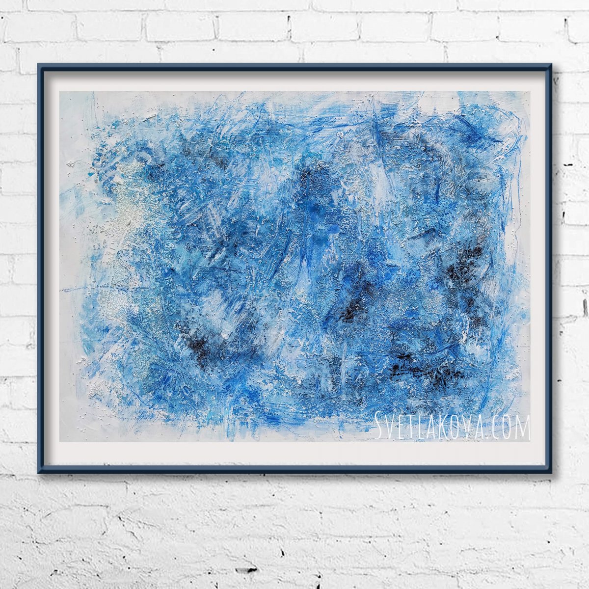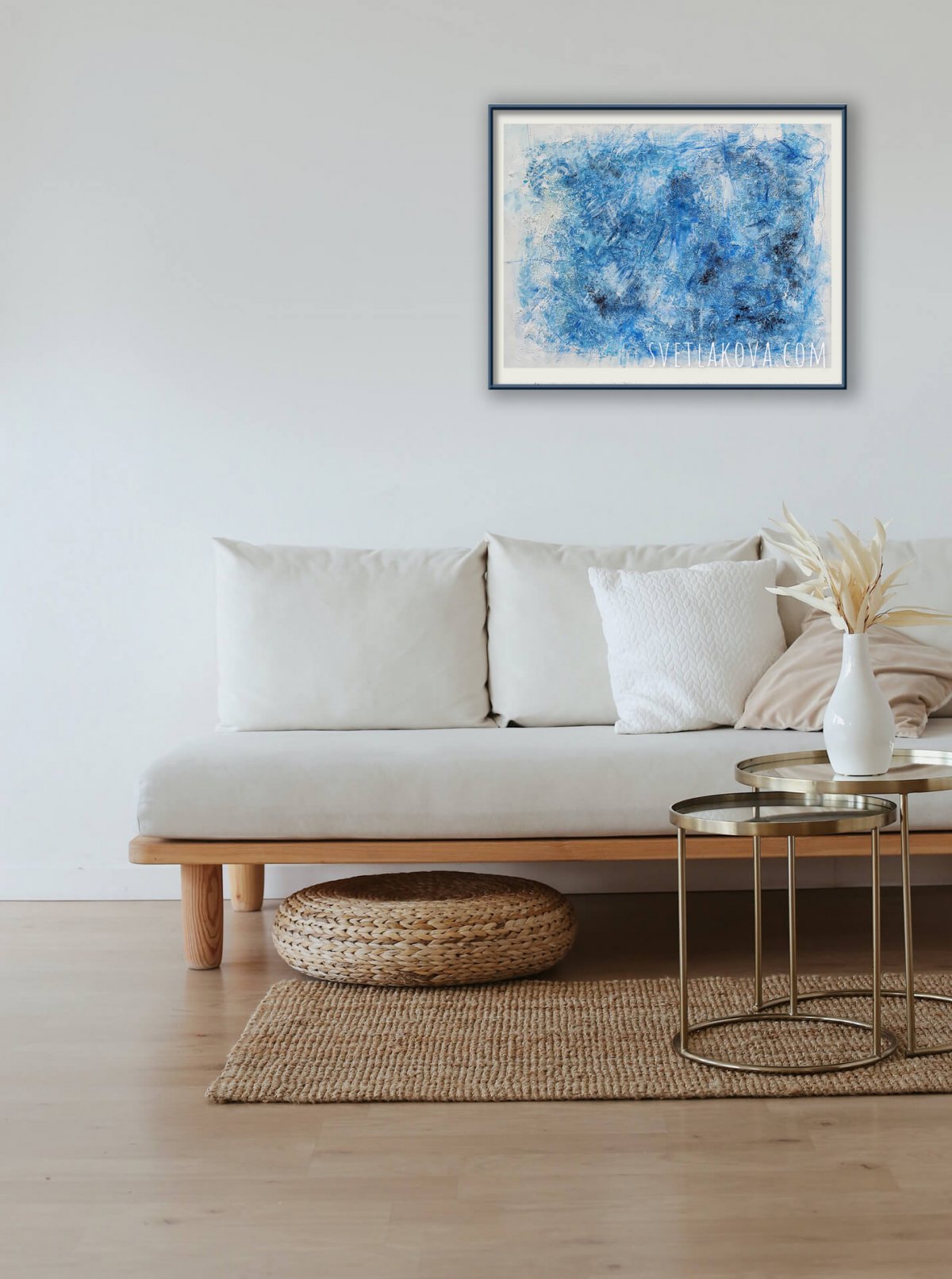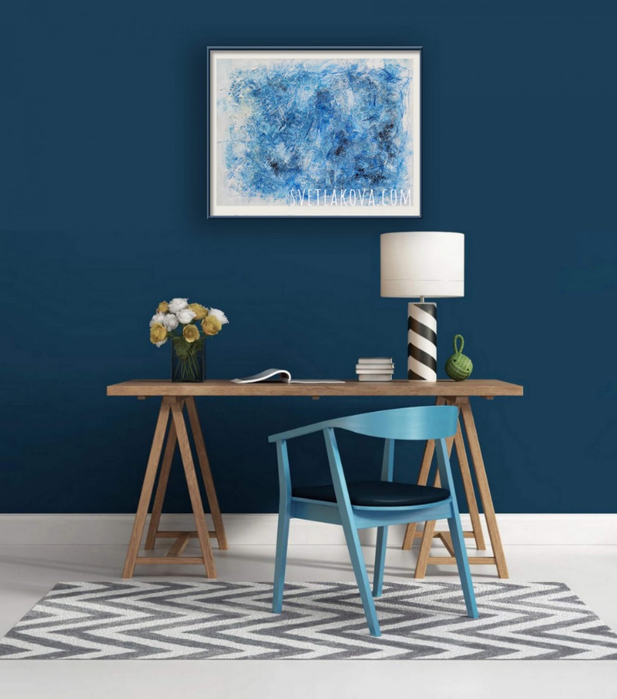 Текстурная синяя абстракция с мелкими деталями для светлого современного интерьера.