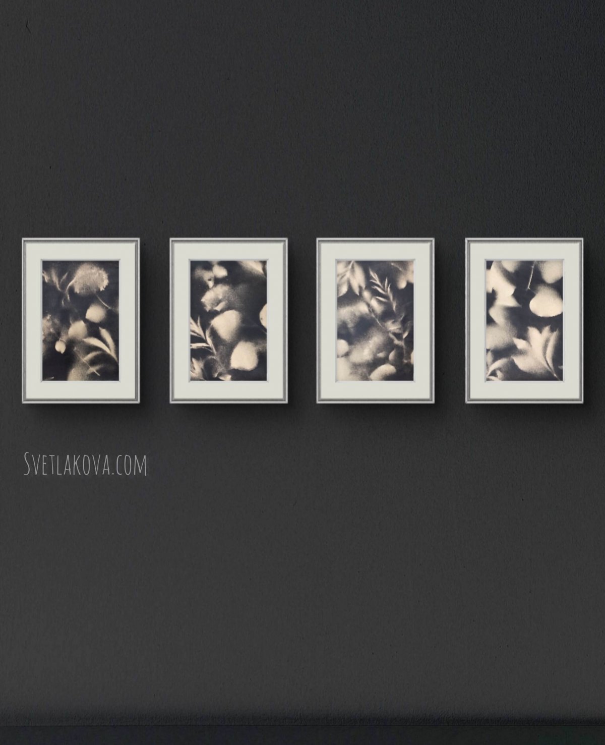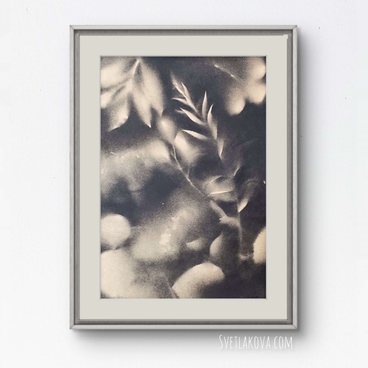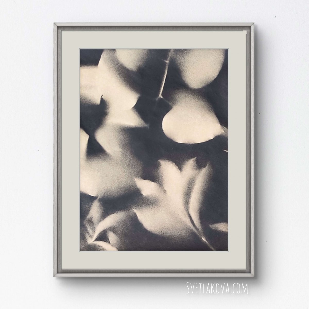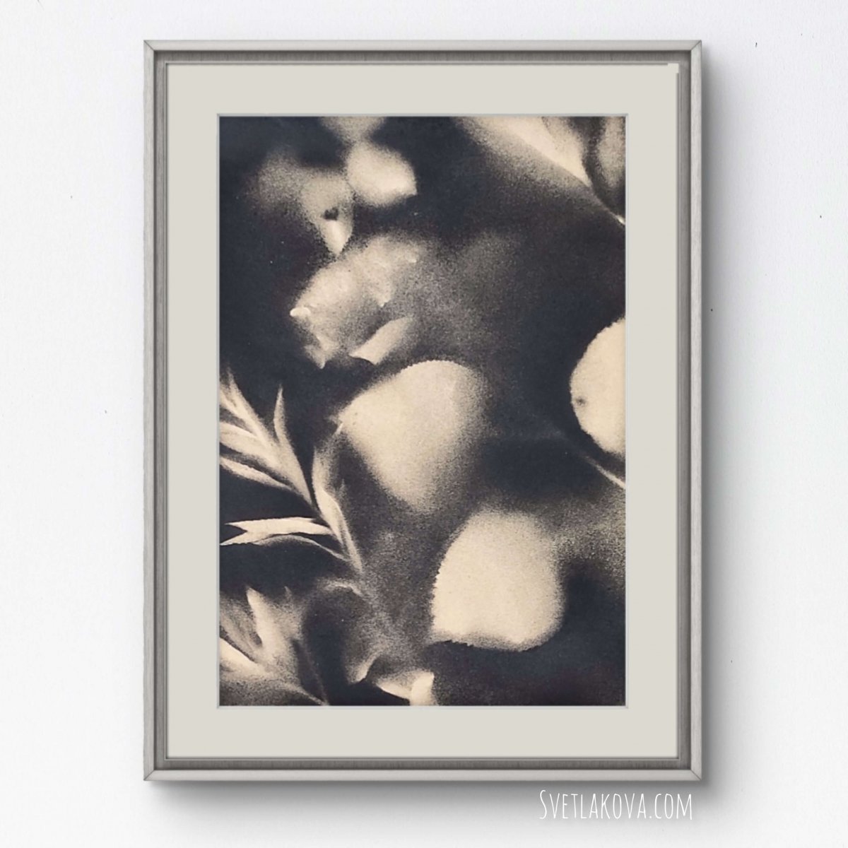 Графичные силуэты и полутени трав и цветов - как память о летних вечерах. Картина напоминает старое размытое черно-белое фото, снятое на плёнку. Настроение: романтизм, немного грусти, ощущение счастья.