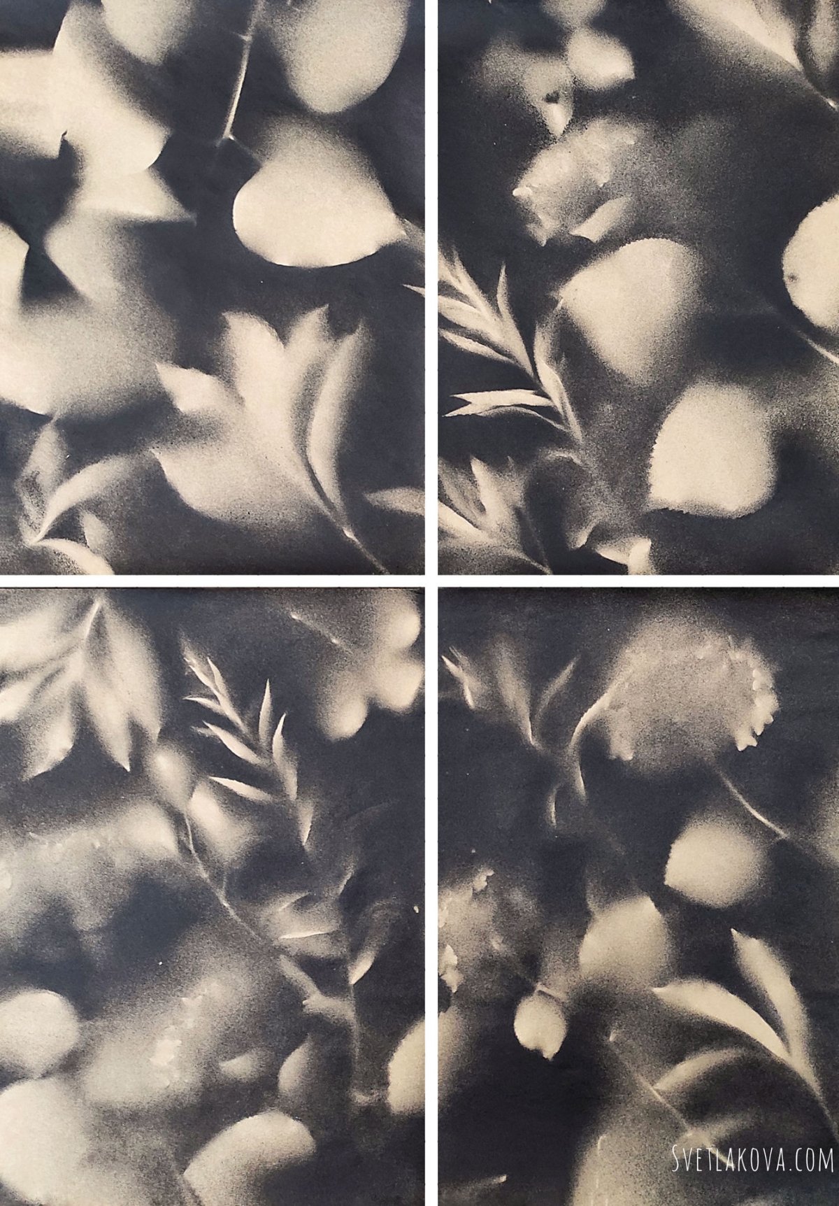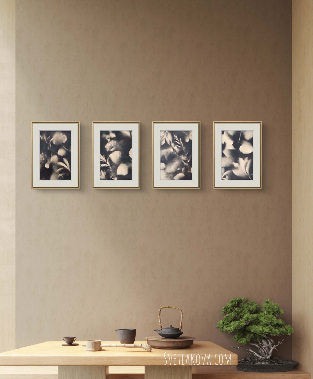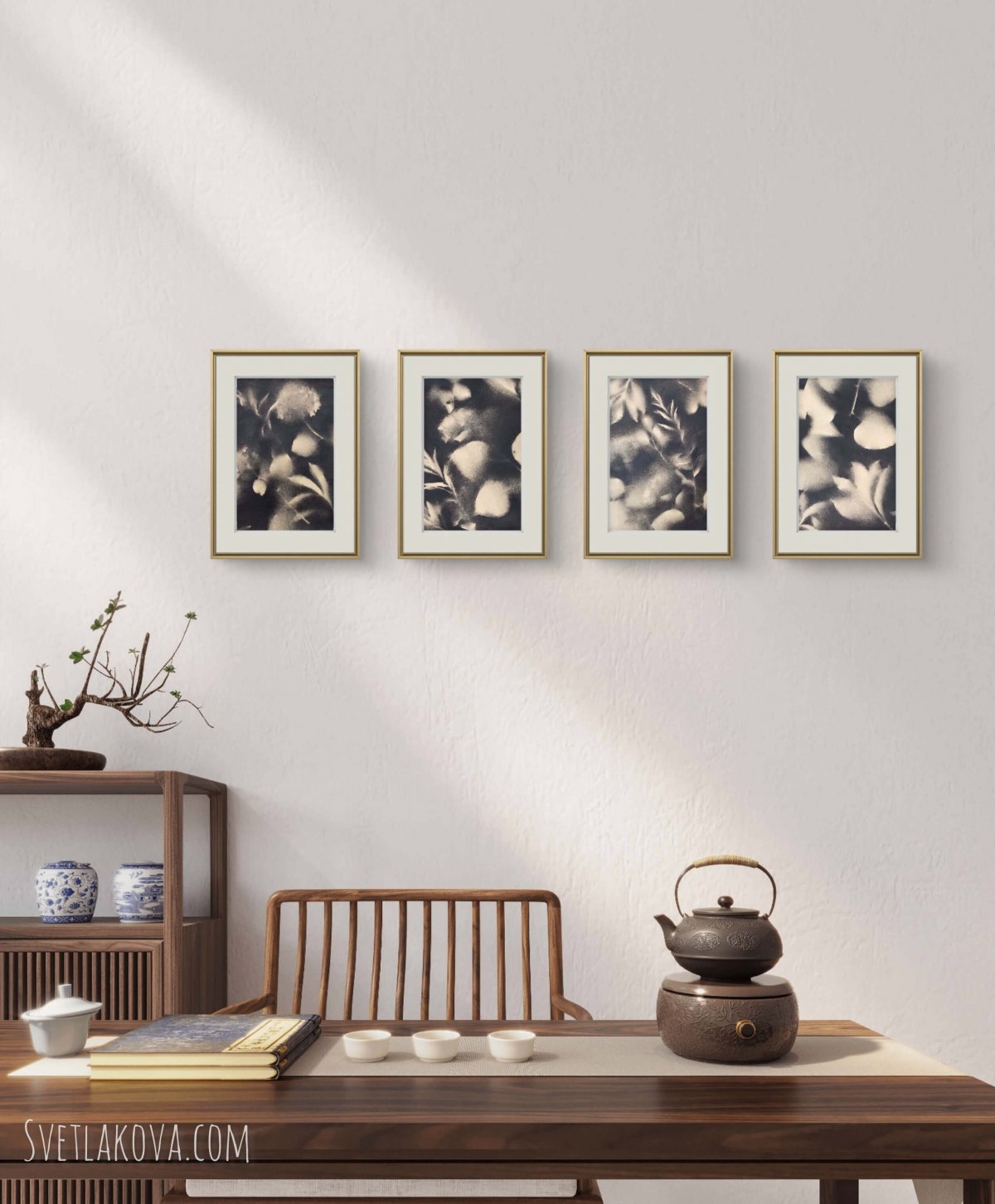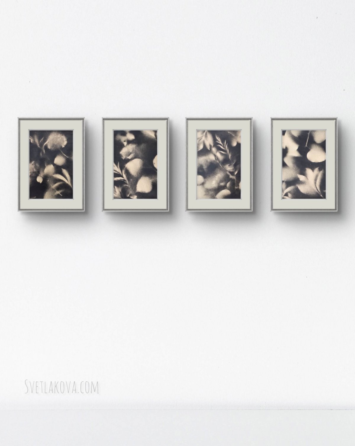 Графичные силуэты и полутени трав и цветов - как память о летних вечерах. Картина напоминает старое размытое черно-белое фото, снятое на плёнку. Настроение: романтизм, немного грусти, ощущение счастья.