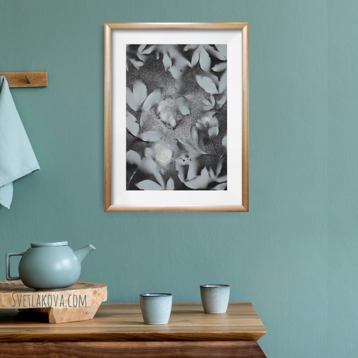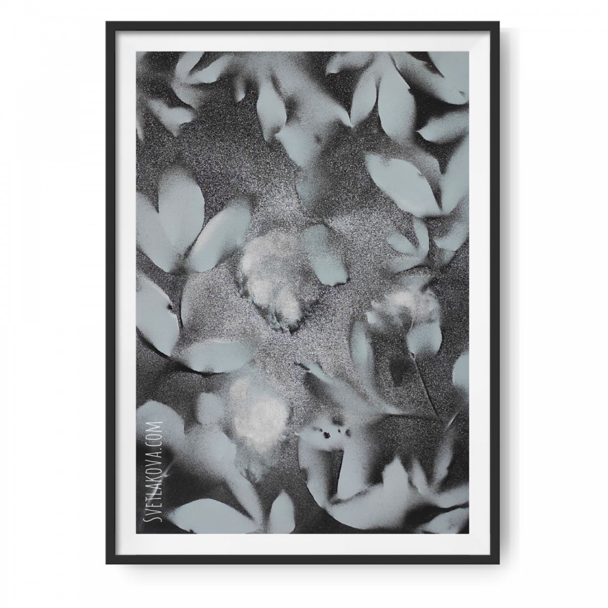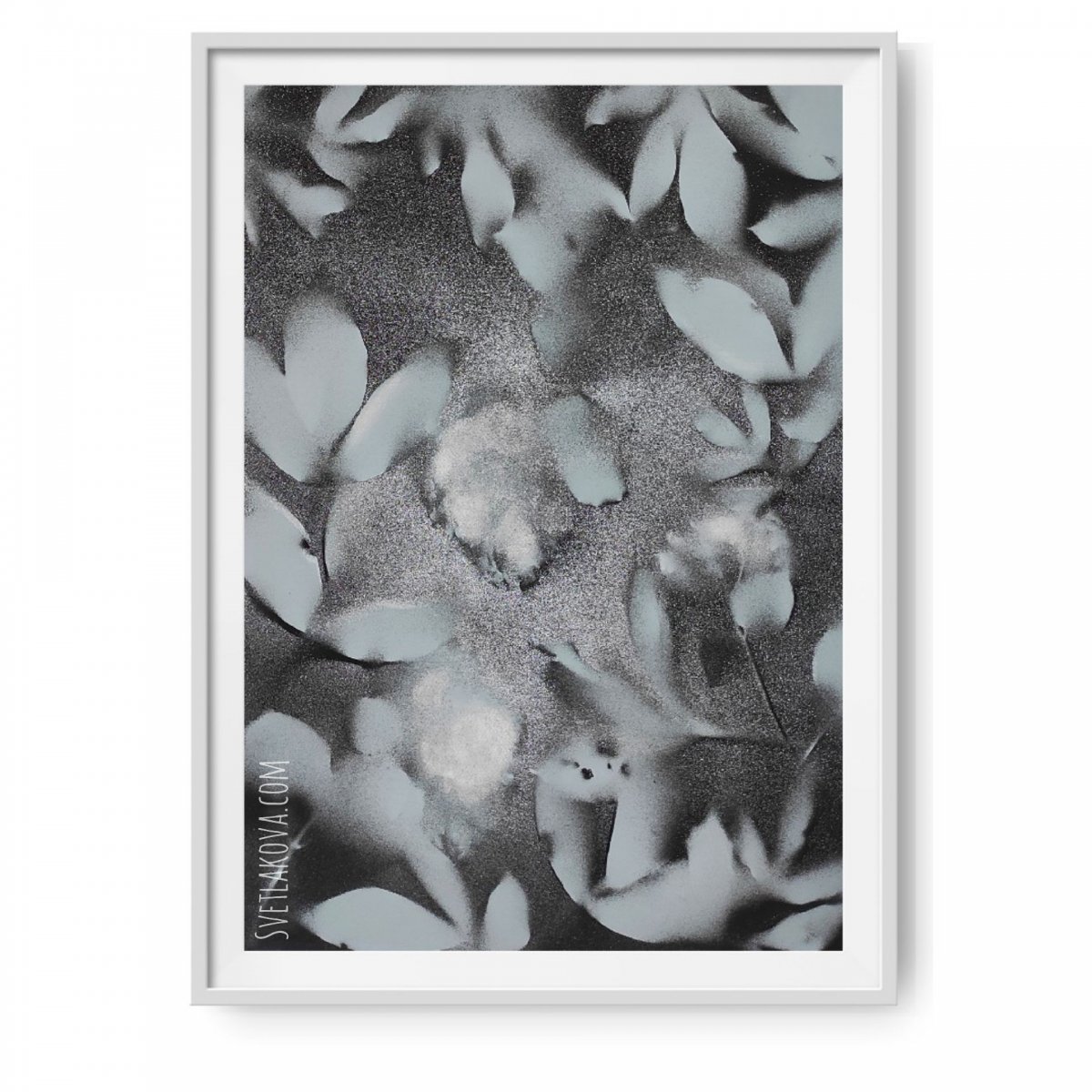 Графичные силуэты и полутени трав и цветов - как память о летних вечерах. Картина напоминает старое размытое черно-белое фото, снятое на плёнку. Настроение: романтизм, немного грусти, ощущение счастья.