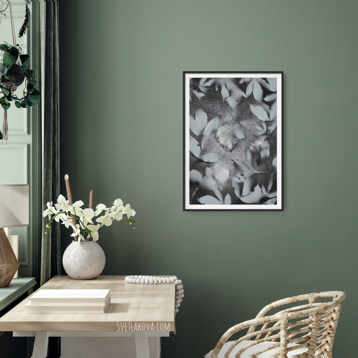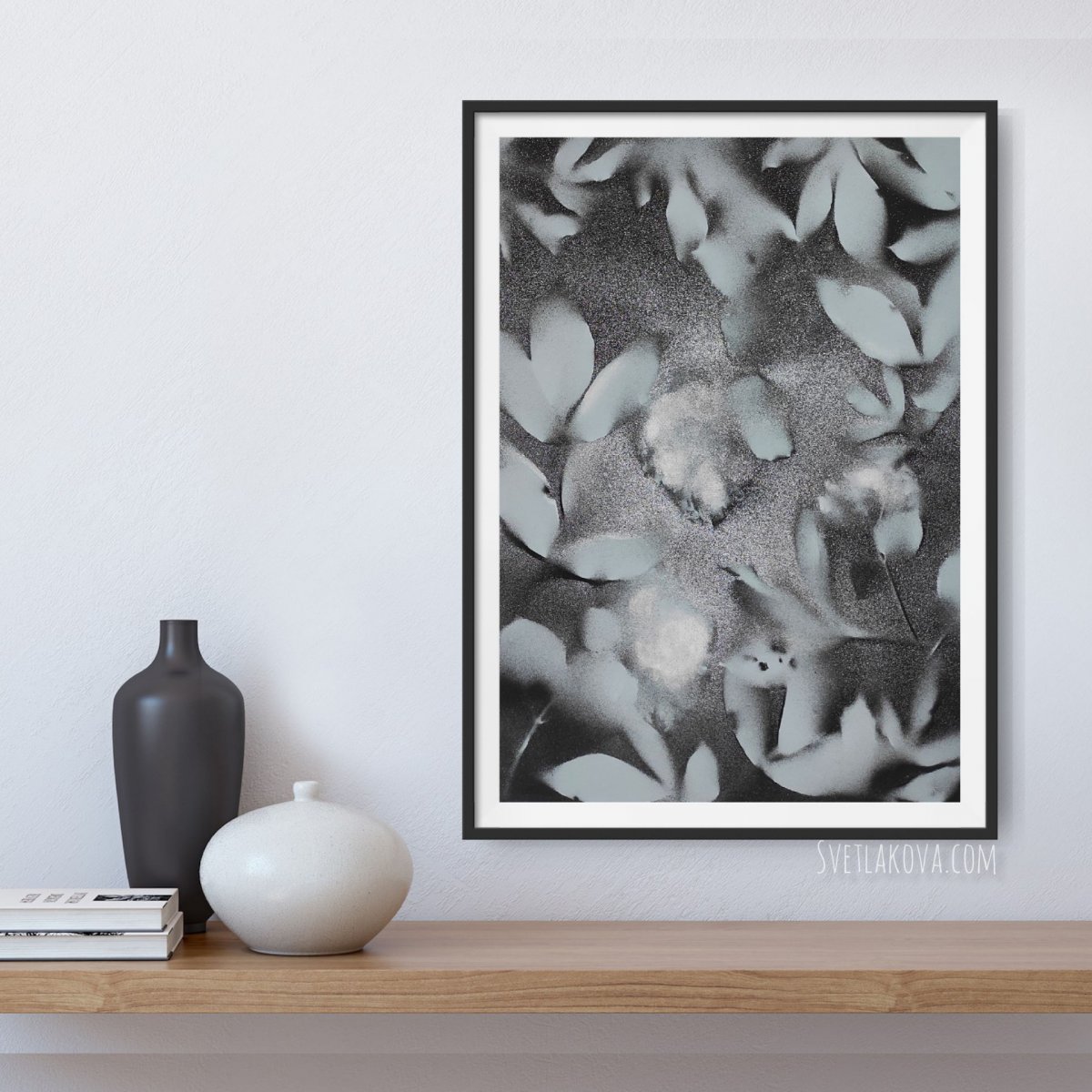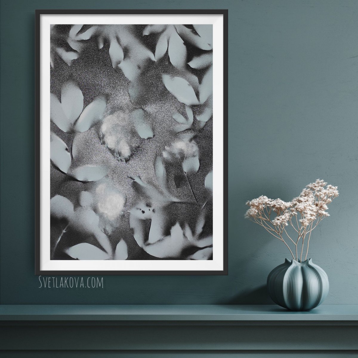 Графичные силуэты и полутени трав и цветов - как память о летних вечерах. Картина напоминает старое размытое черно-белое фото, снятое на плёнку. Настроение: романтизм, немного грусти, ощущение счастья.