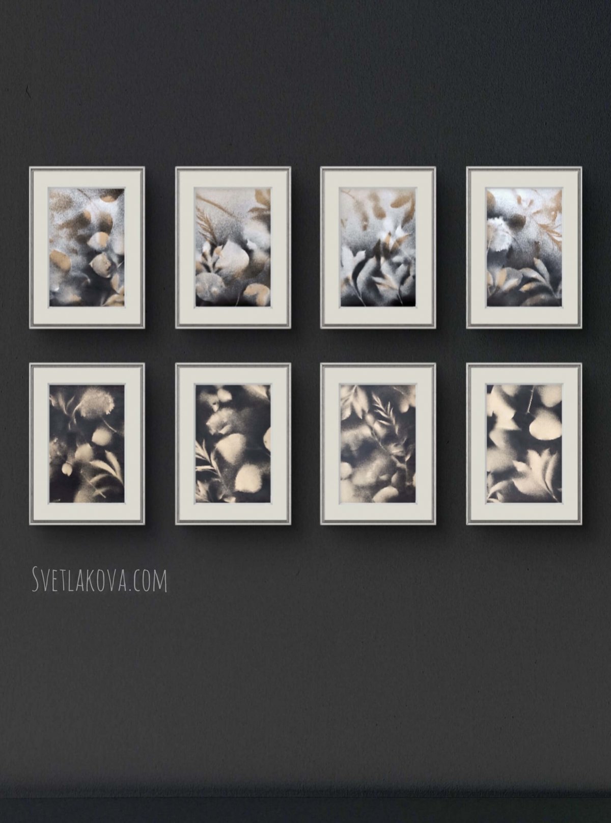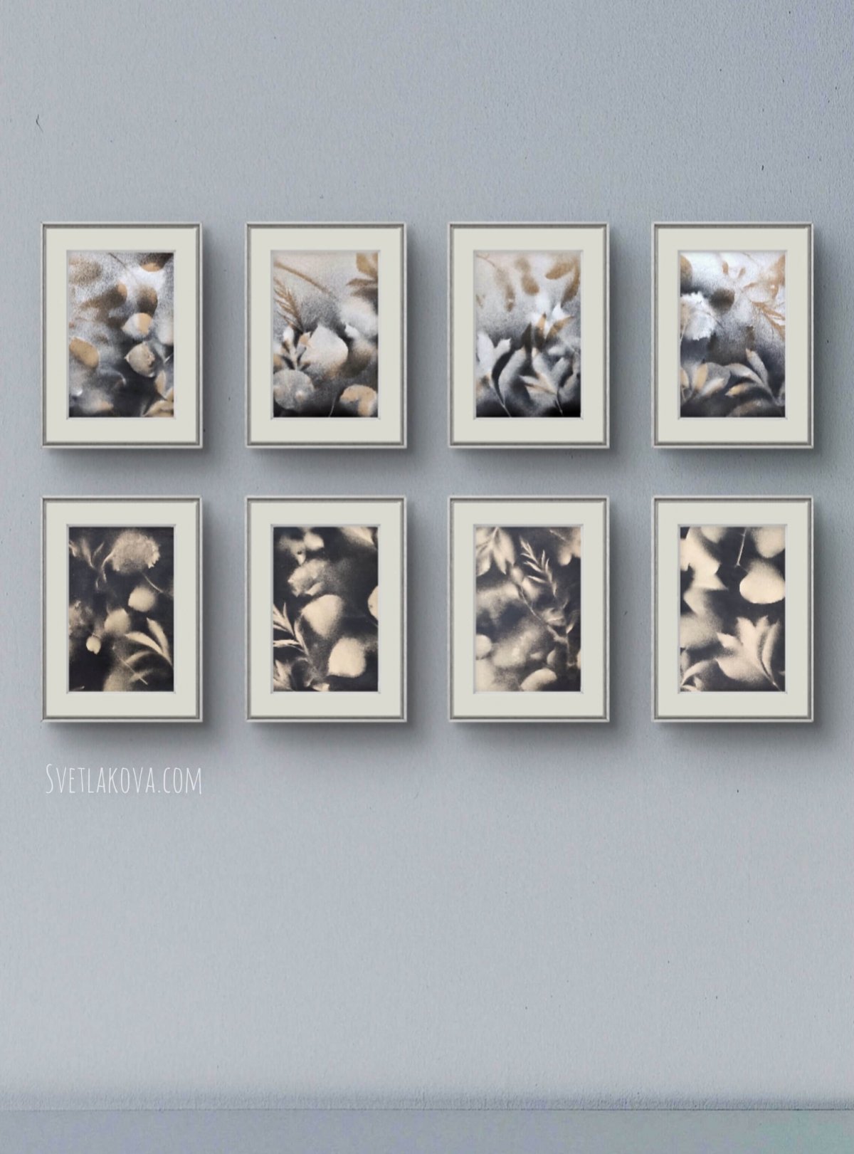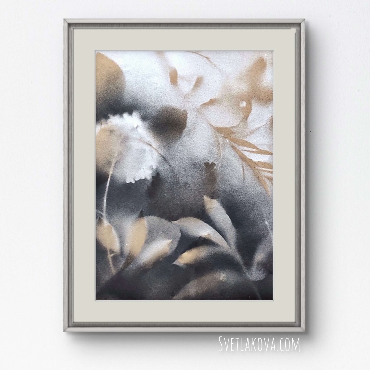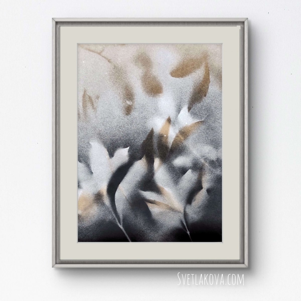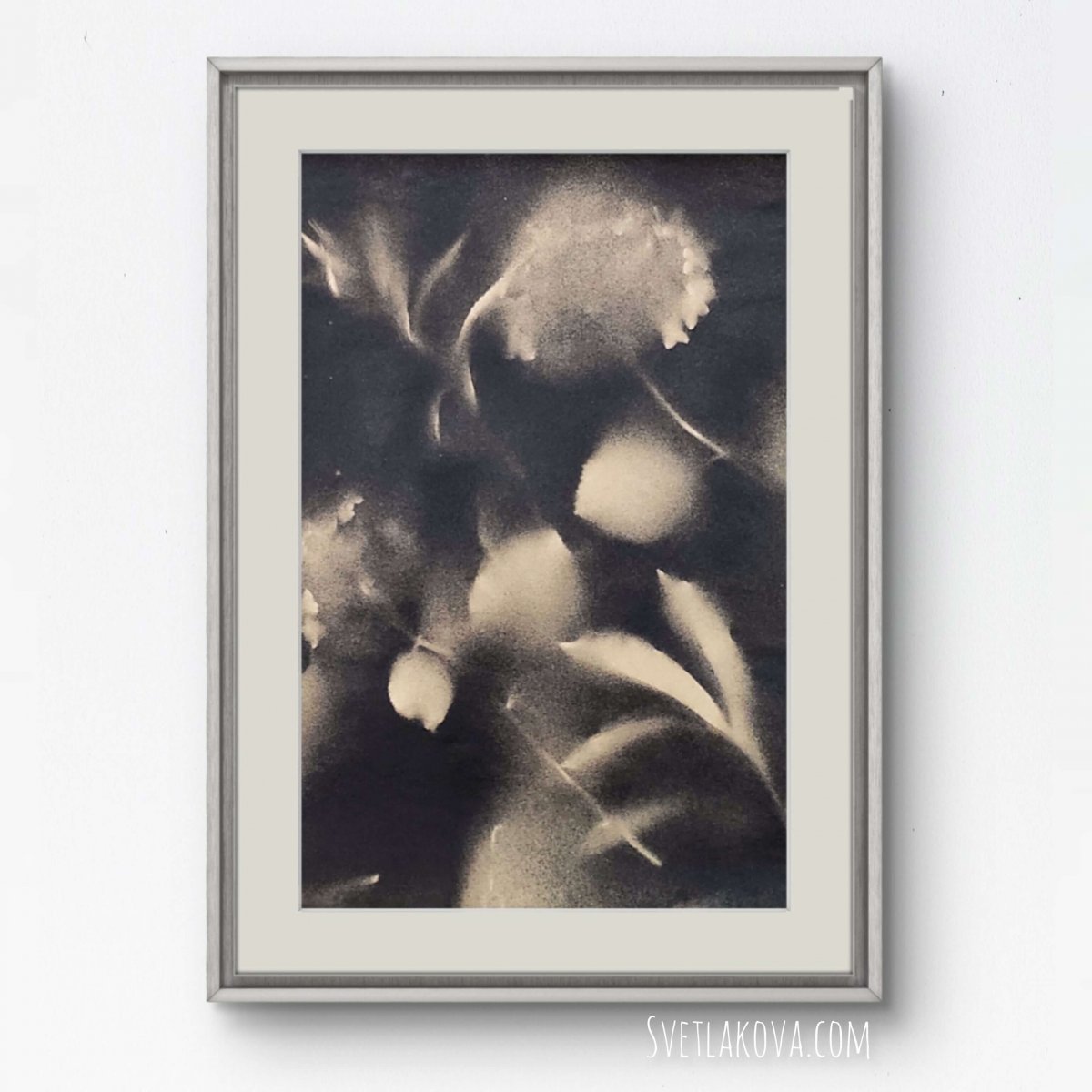 Графичные силуэты и полутени трав и цветов - как память о летних вечерах. Картина напоминает старое размытое черно-белое фото, снятое на плёнку. Настроение: романтизм, немного грусти, ощущение счастья.