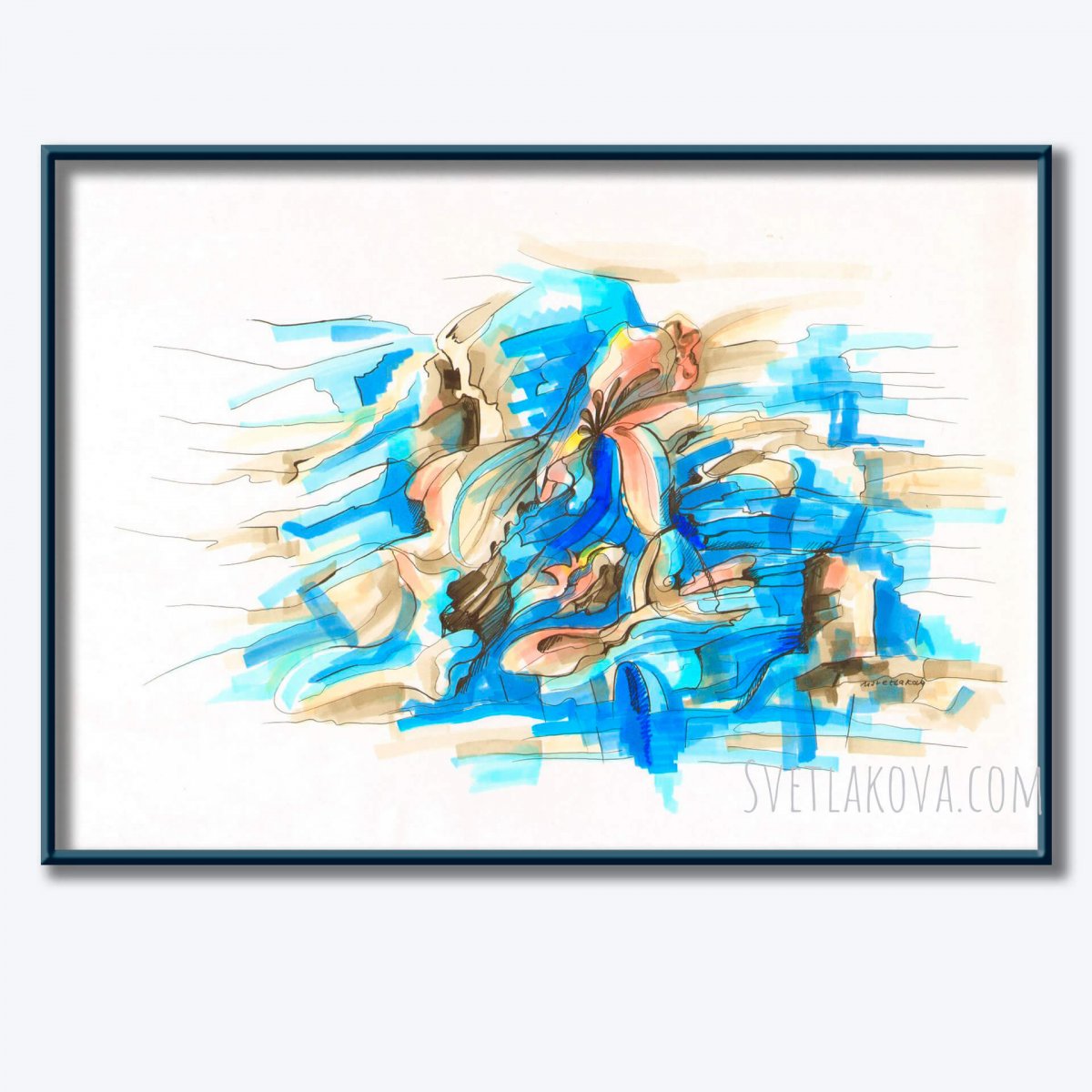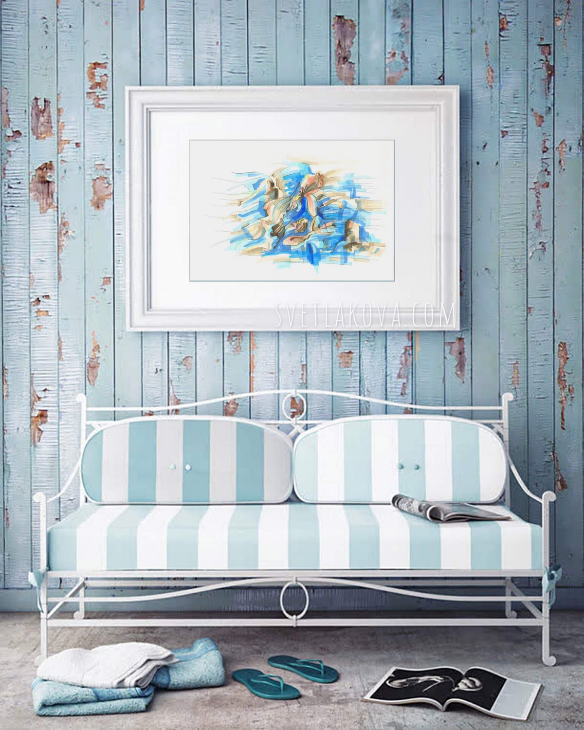 Эта работа о лете, голубой воде и об ощущении счастья. Наслаждайтесь своей жизнью и дайте волю своему воображению! Синева дарит нам предвкушение приятных снов и грёз.